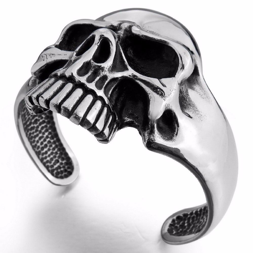 - Name: Men's Special Present Gothic Cool Jewelry Stainless Steel Silvery Polished Skull Shape Exquisite Bangle Bracelet