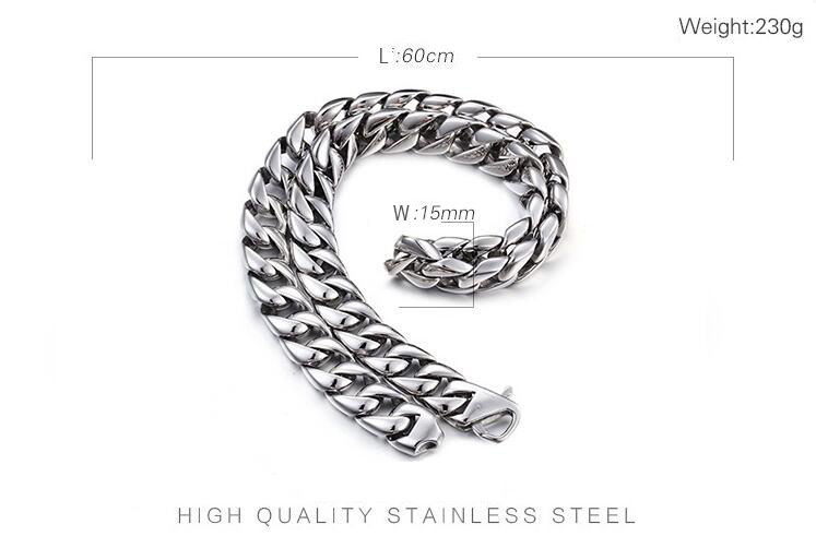 - Name: Cuban Curb Link Chain Necklace 60CM Long 15MM Wide Necklaces For Men 316L Stainless Steel Necklace Party popular necklace