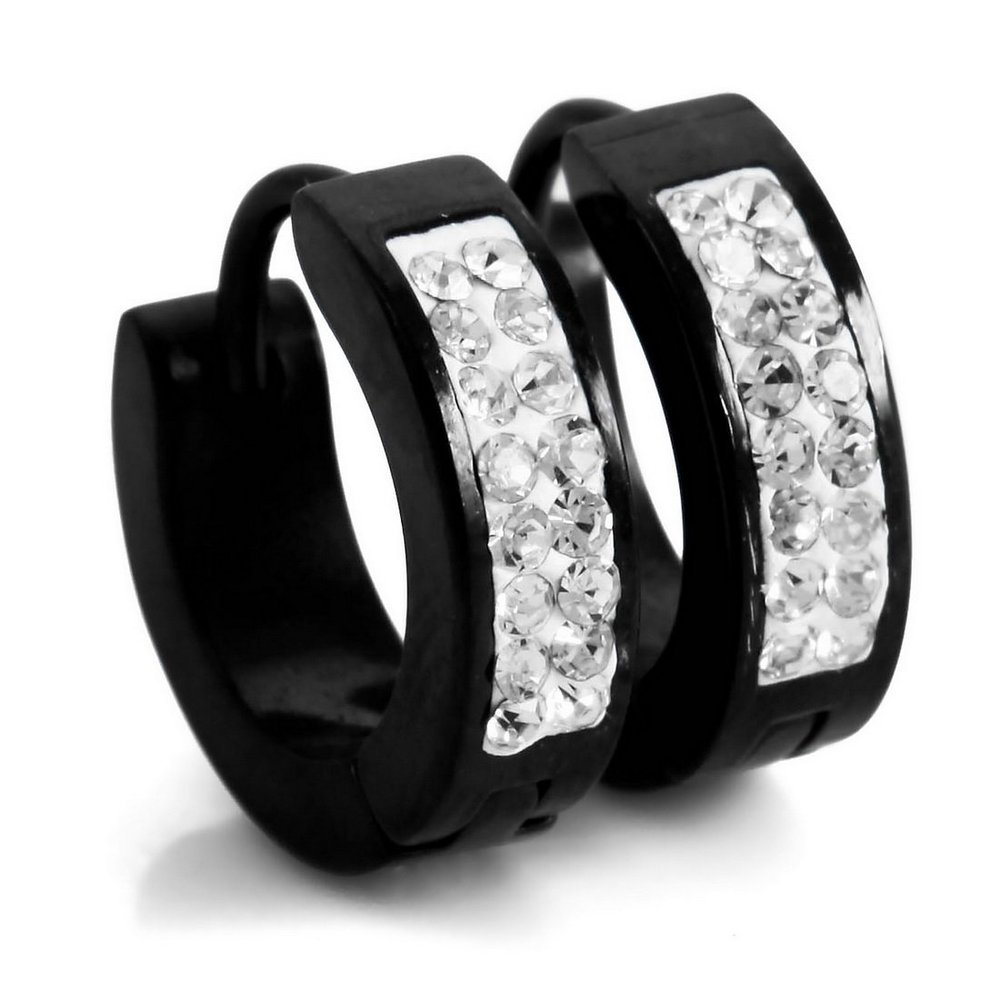 - Name: Men's Stainless Steel Stud Hoop huggie Earrings CZ Silver Black Charm Elegant