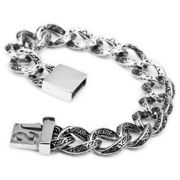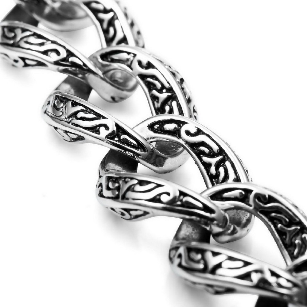 - Name: Cool Engraved Biker Bracelet Stainless Steel Bracelet Man's Favorite Large Heavy Bracelet Size Length 16mm Width 230 mm