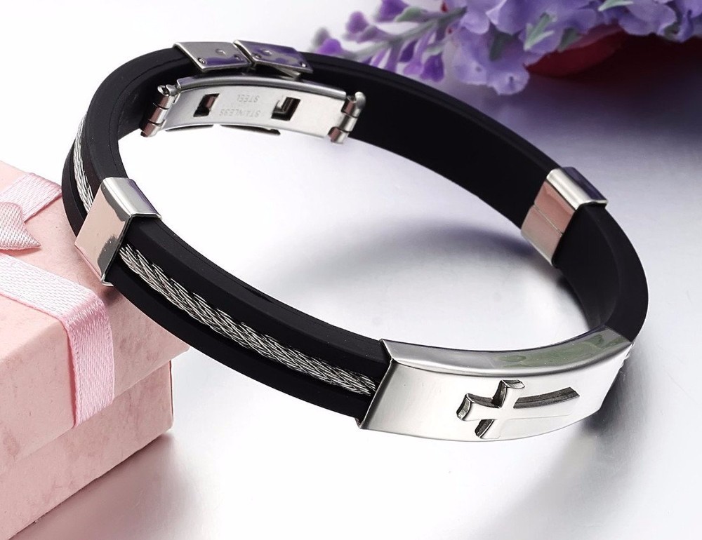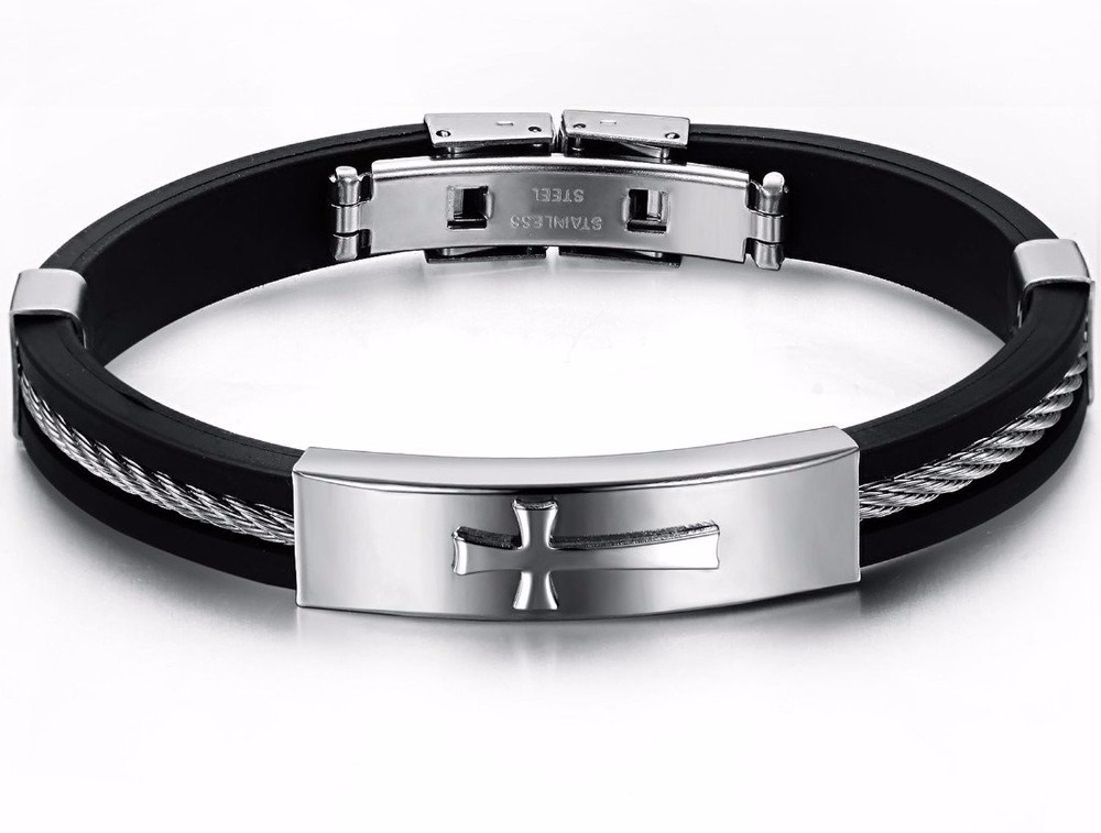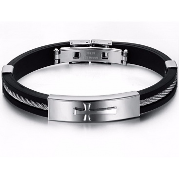 - Name: Men's Gift Special Wholesale Jewelry Stainless Steel Silvery Black Rope Cross Decorated Vintage Bangle Bracelet