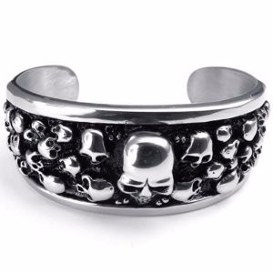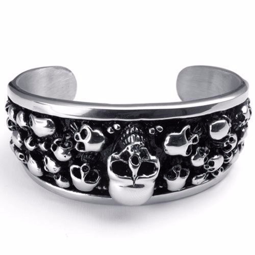 - Name: Women's Punk Retro Jewelry Stainless Steel Silvery Black Gothic Skulls Decorated Newest Popular Cuff Bangle Size:48mm