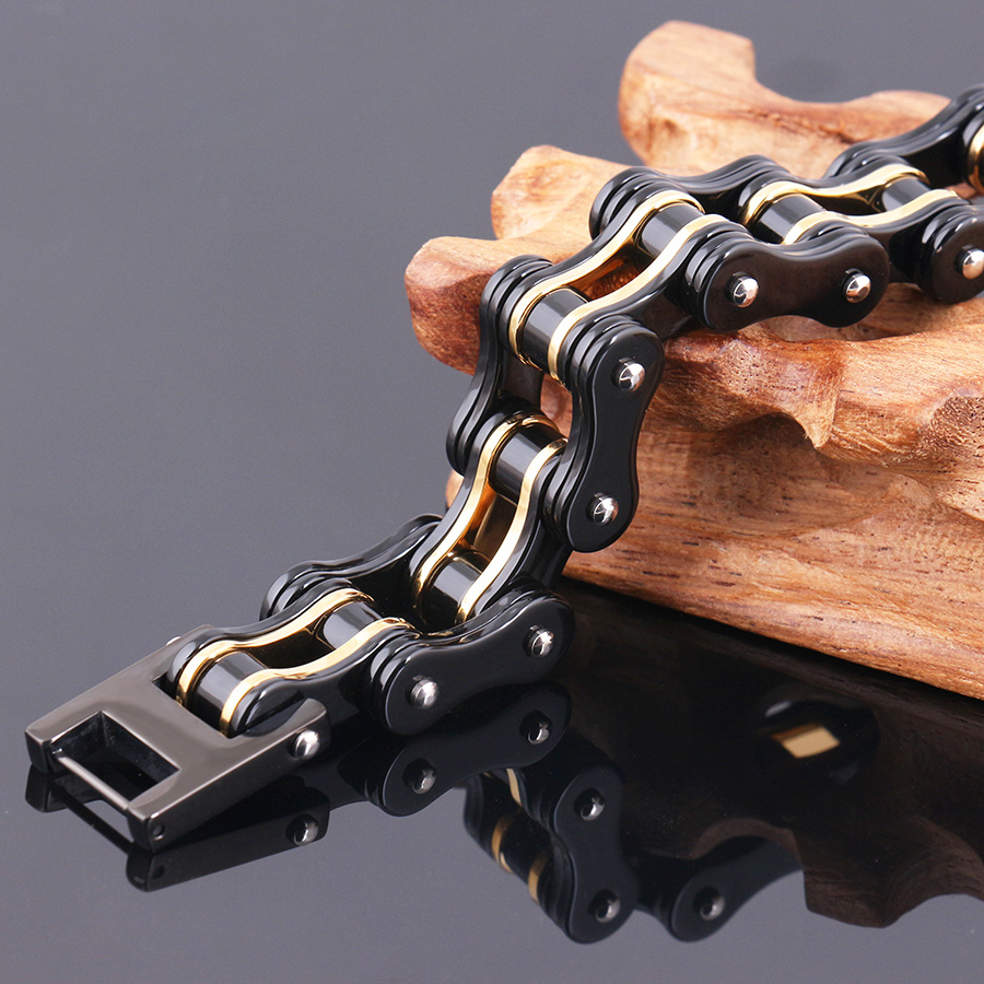 - Name: men Supernova Sale 18mm Width Men's Cool Black Gold Motorcycle Chain Bracelet Bike Jewelry 316L Stainless Steel