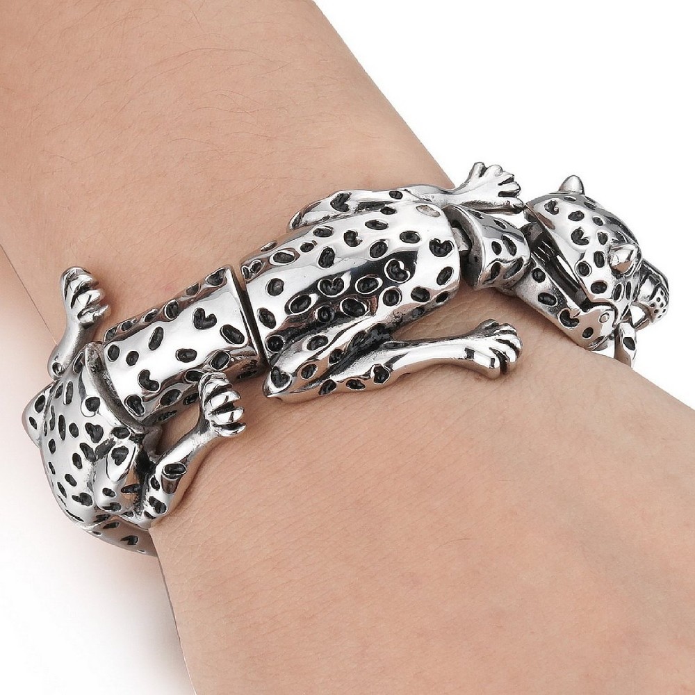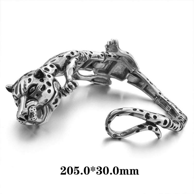 - Name: Silver Black Biker Bracelet Stainless Steel Bracelet Gothic Men's Leopard Link Wrist Bracelet