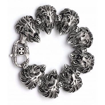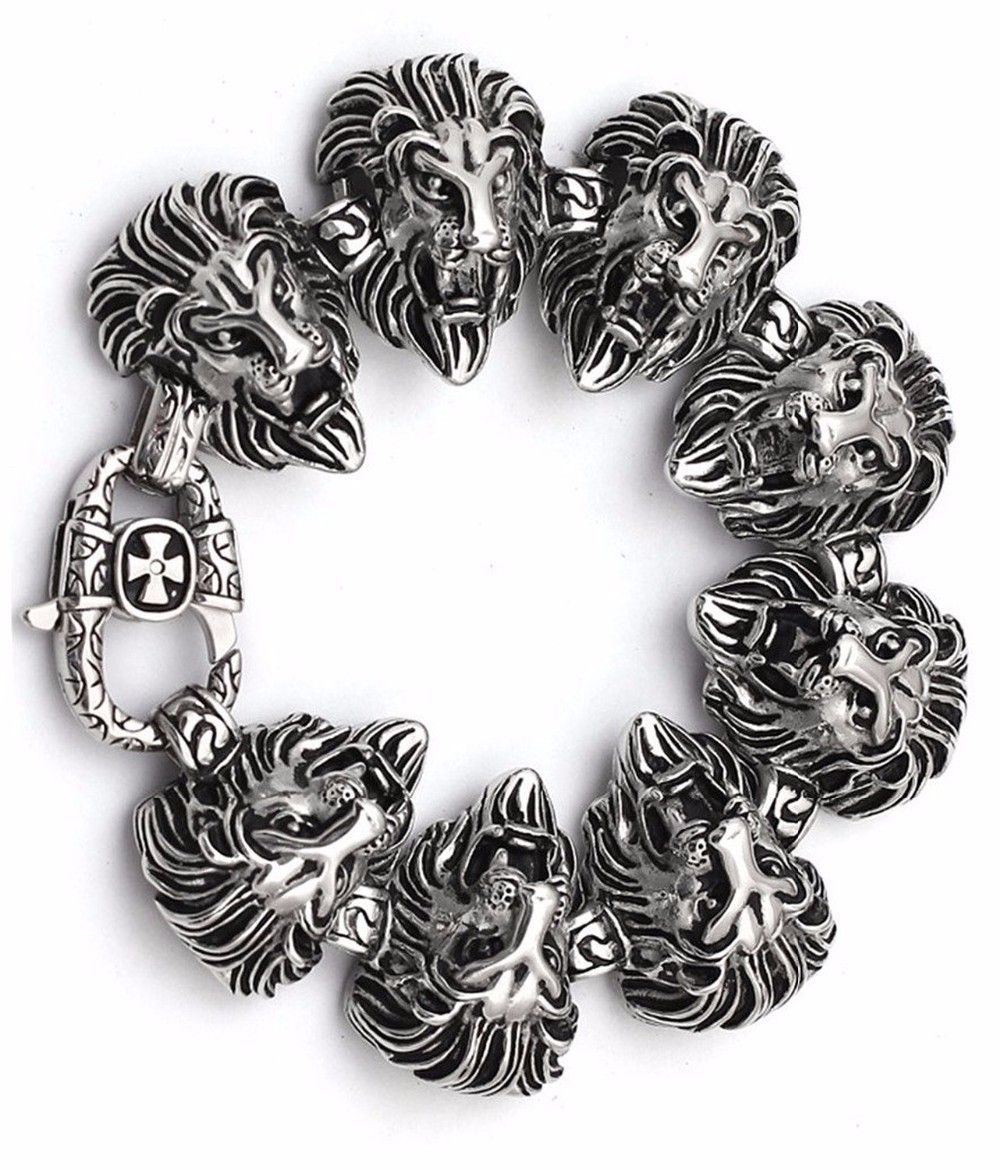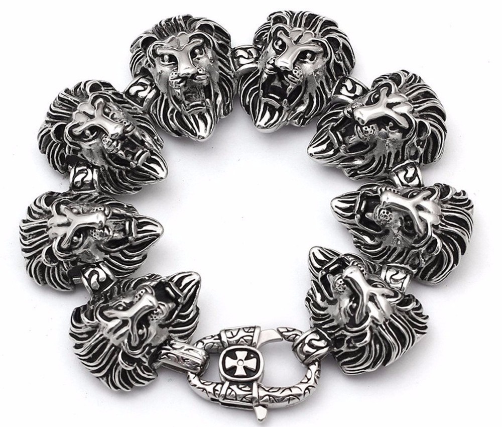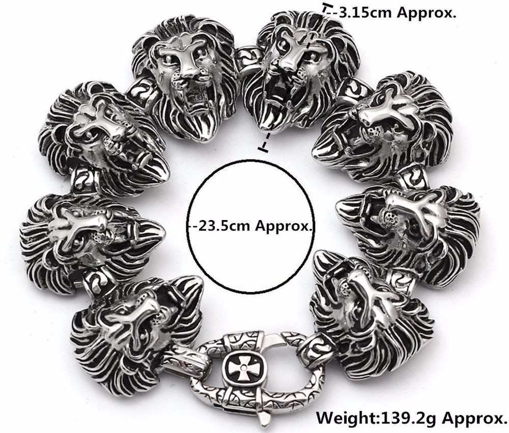 - Name: Gothic Luxury Jewelry Stainless Steel Silvery Black Delicate Lion Head Shape Wholesale Wrist Bracelet Length: 23.5cm