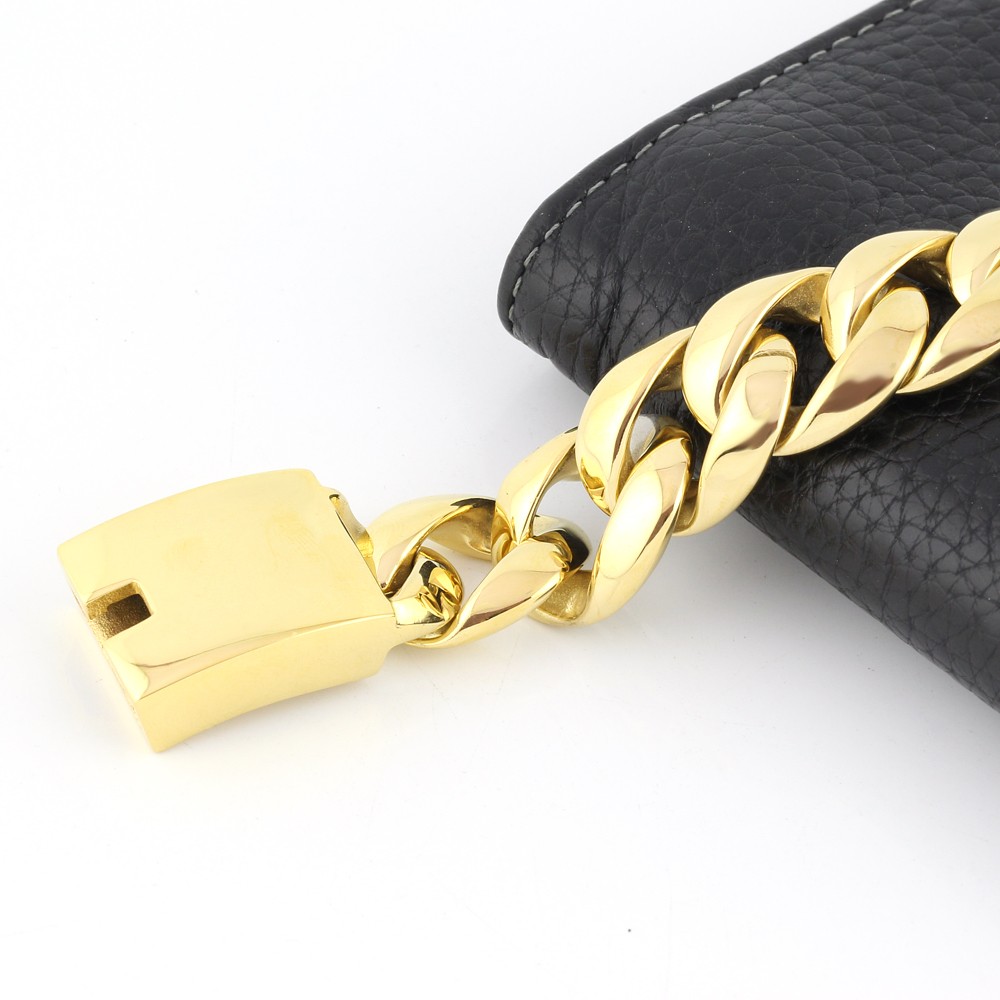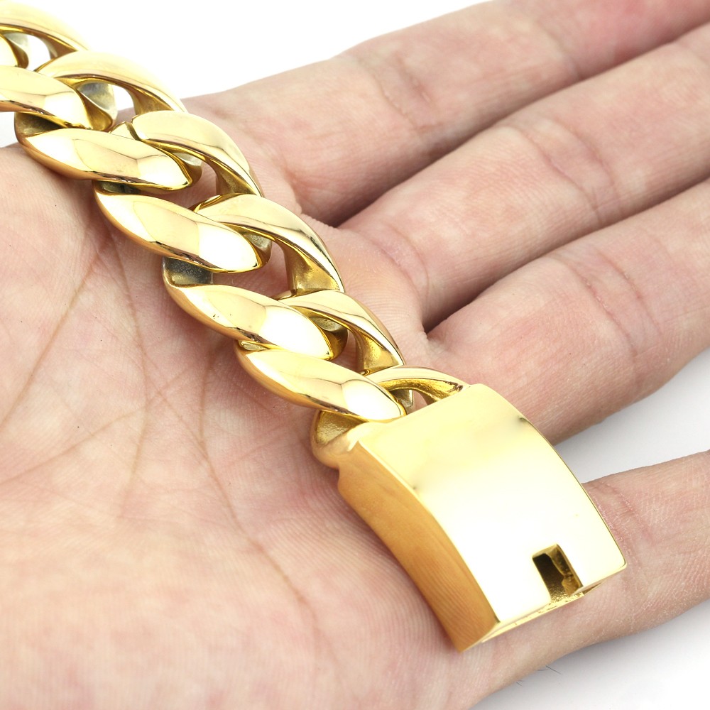 Men's Bracelets Gold Chain Link Bracelet Stainless Steel 17mm Width stainless chain bracelet and neckless set