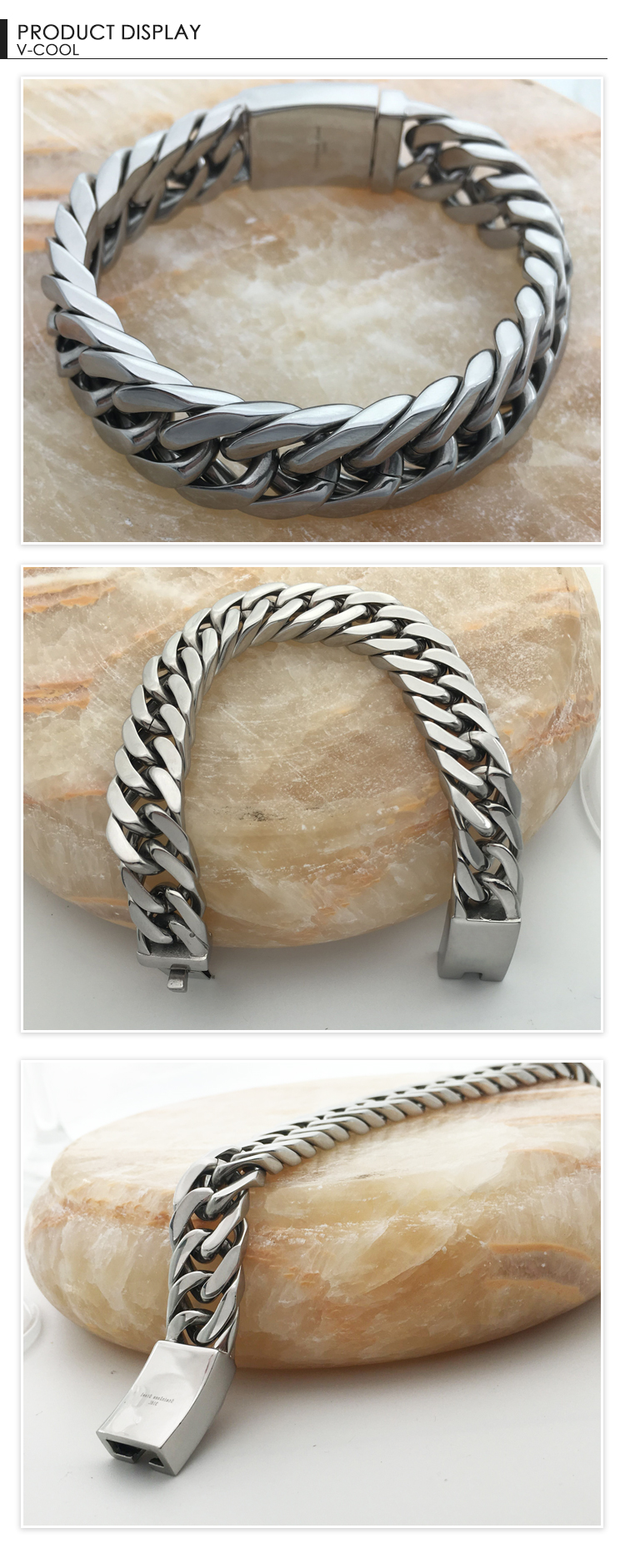 - Name: Fashion Jewelry Chain Silver 316L Stainless Steel Bracelet Simple Smooth Link Chain Cuba Bracelet Bangle For Men