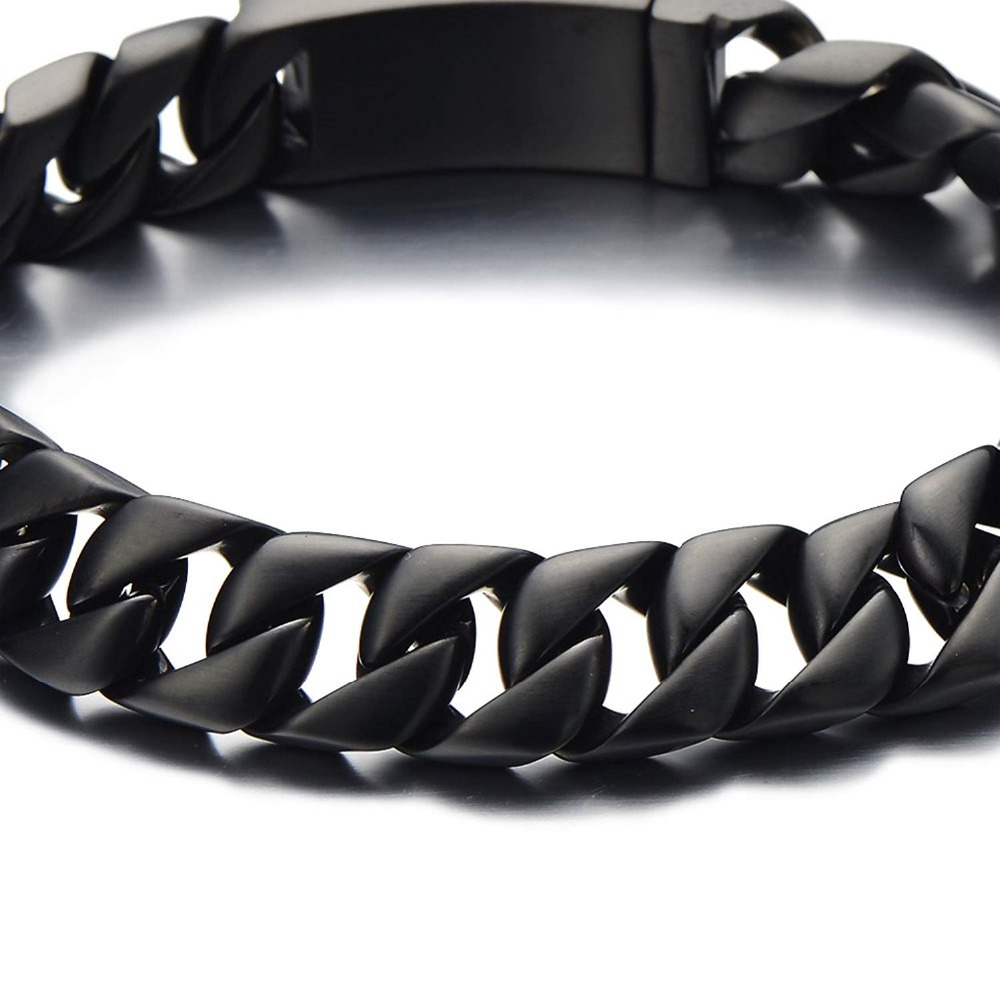 - Name: Popular in Cuba Masculine Men Stainless Steel Black Curb Chain Bracelet Satin Finishing
