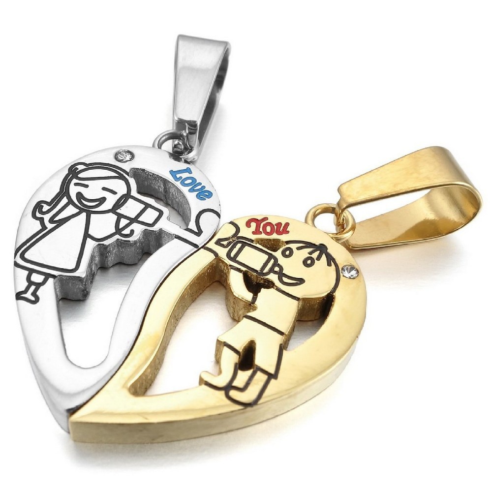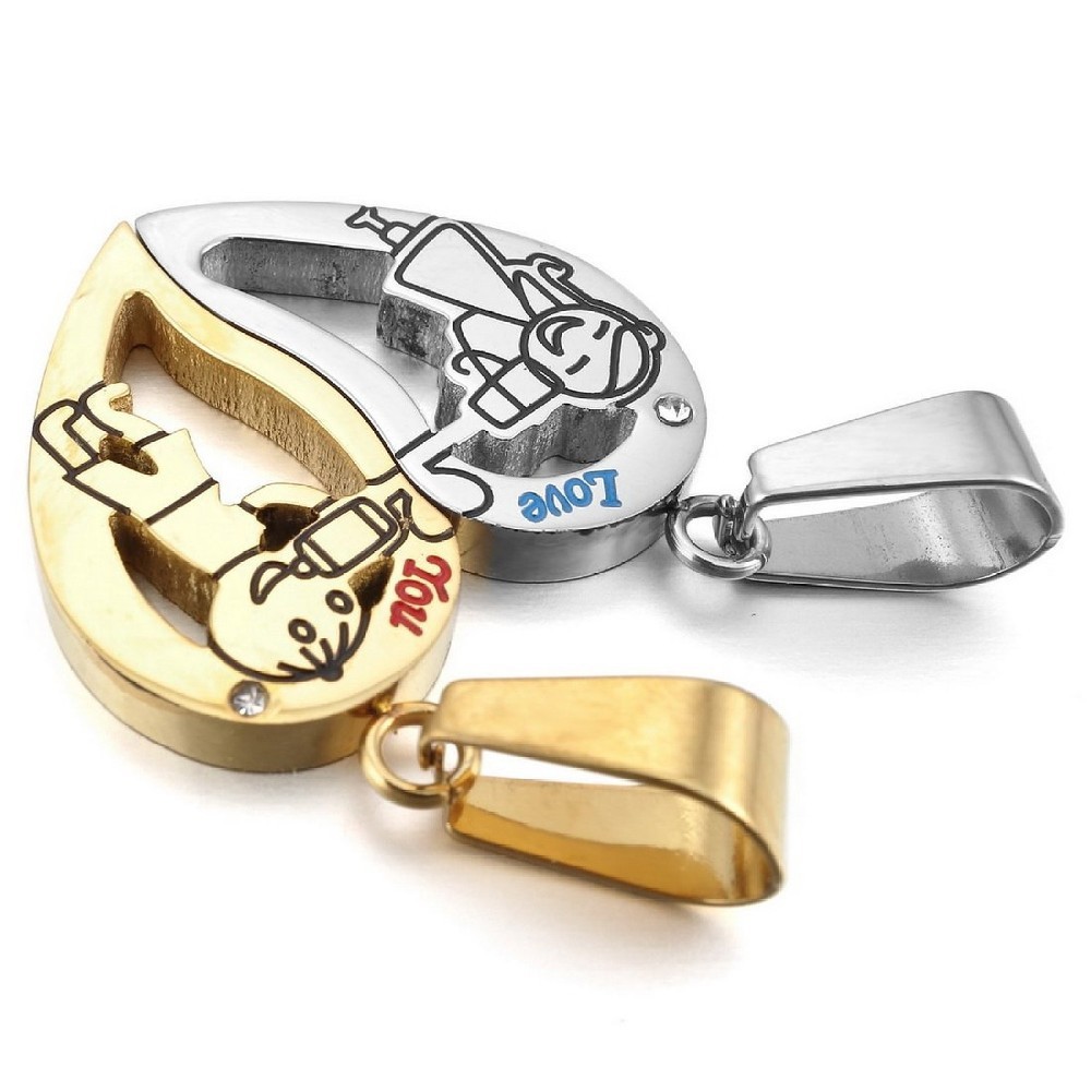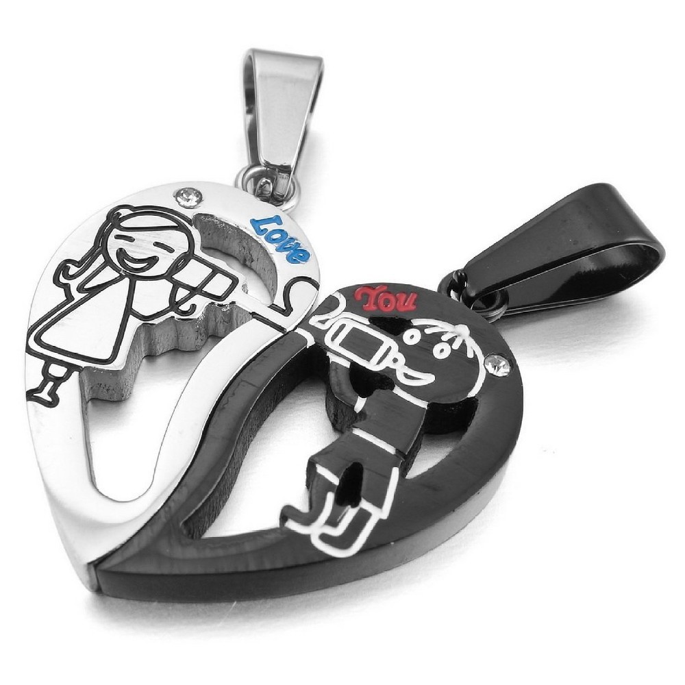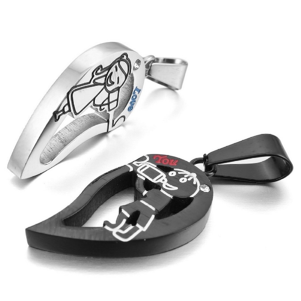 - Name: jewelry 2015 "Love You" 2PCS Stainless Steel Pendant Necklace CZ Silver Black Love Valentine Couples His & Hers Set