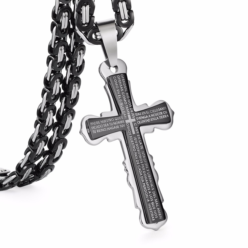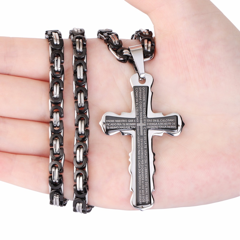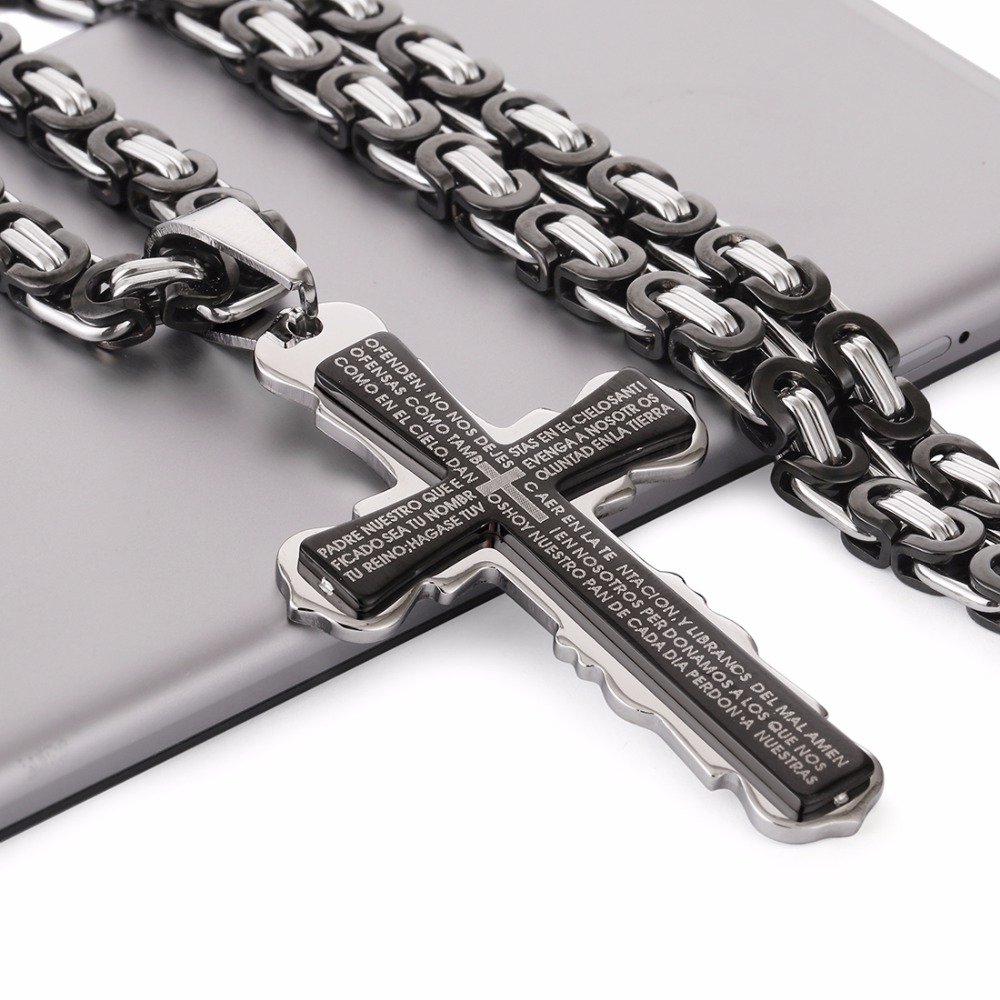 - Name: Stainless Steel Pendant Necklace Black Silver Tone Bible Cross Strong Long Thick Link Byzantine Chain Gift for Men Jewelry