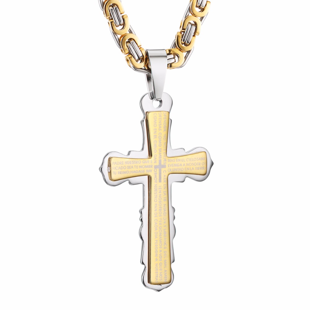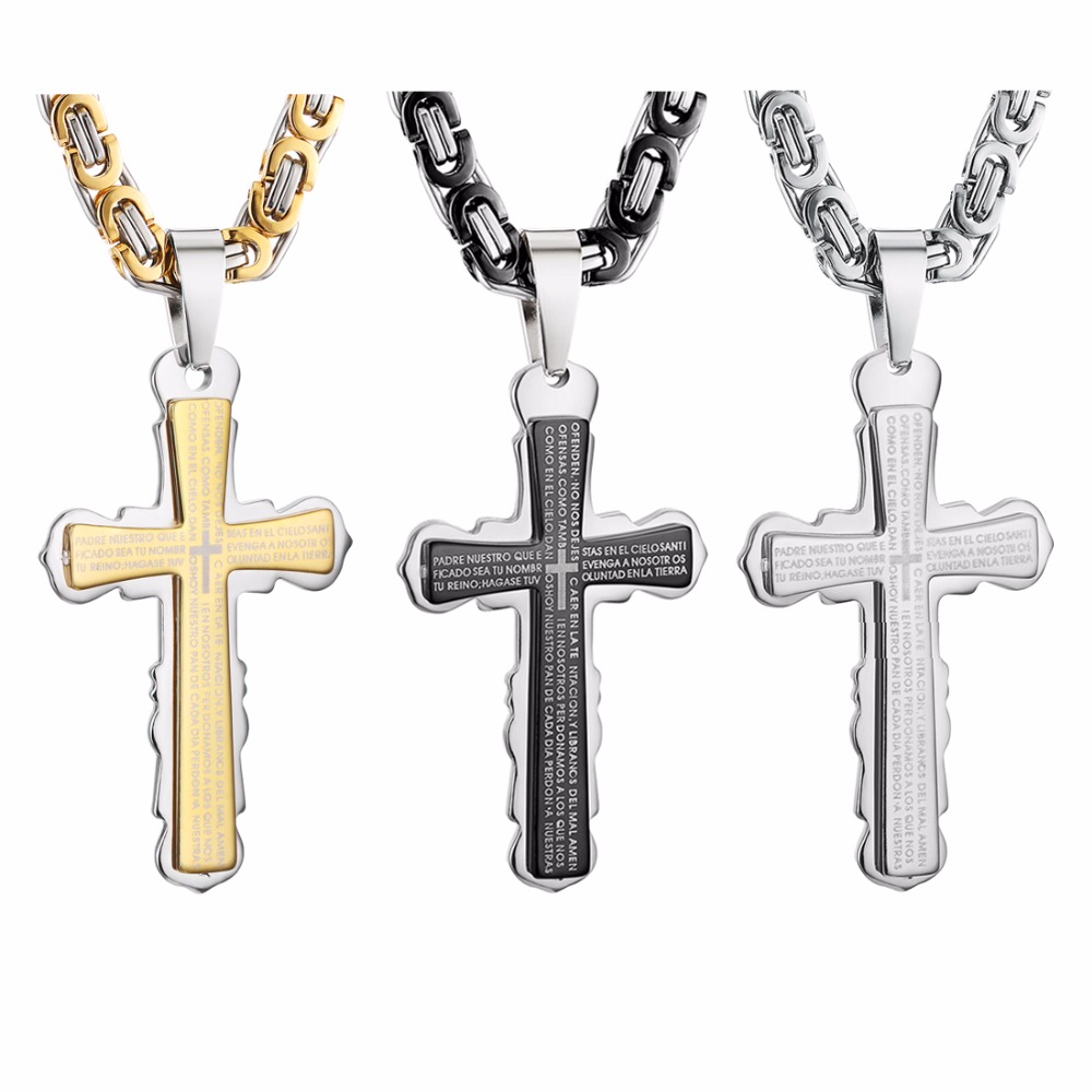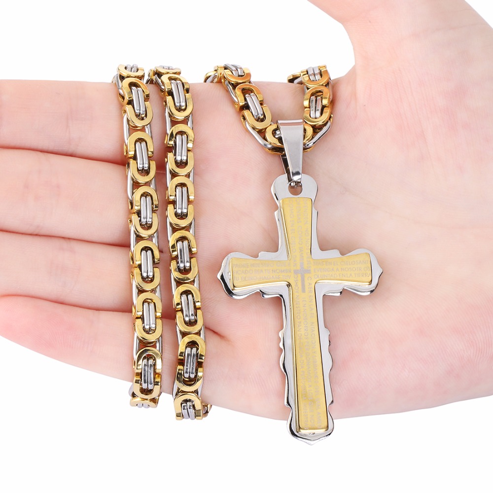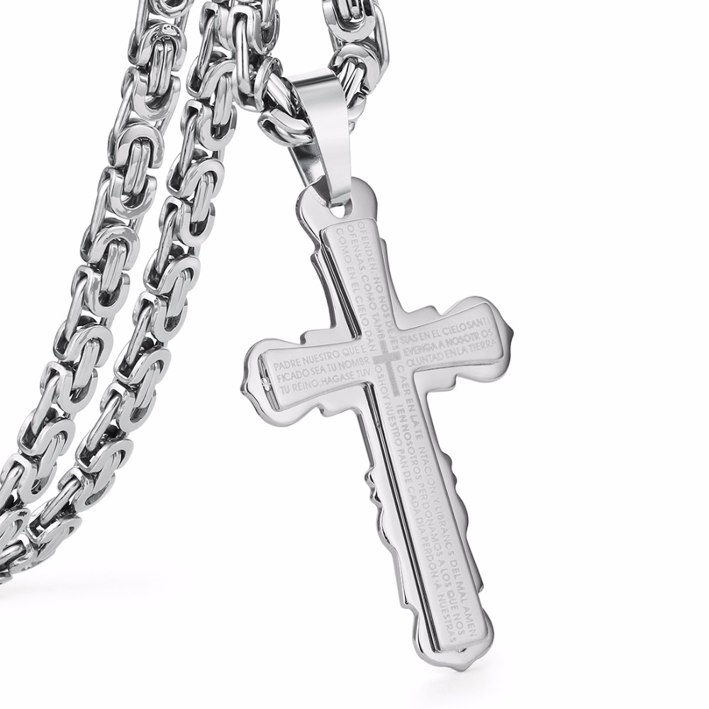 - Name: Stainless Steel Pendant Necklace Black Silver Tone Bible Cross Strong Long Thick Link Byzantine Chain Gift for Men Jewelry