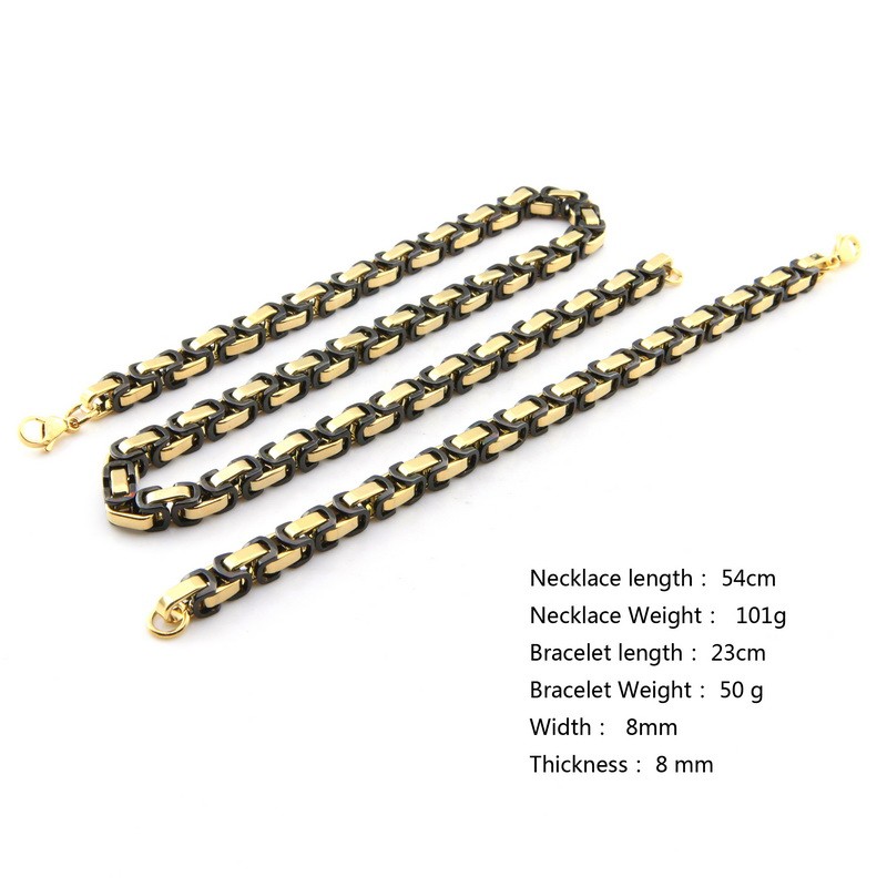 - Name: Stainless steel men Necklace and Bracelet Jewelry Sets 316l Stainless Steel Men Chain Heavy Metal Punk-Black Gold