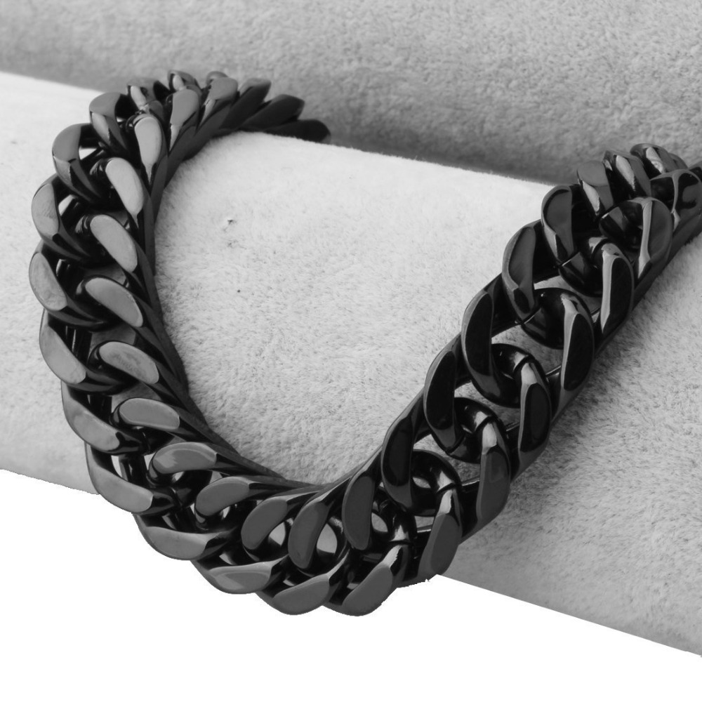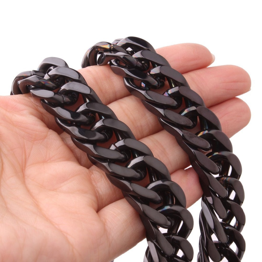 - Name: man Black Stainless Steel Necklace Men Jewelry 15mm Wide 22inches Cuban Curb Link Chain Necklace