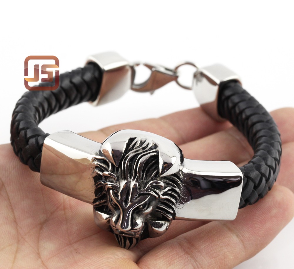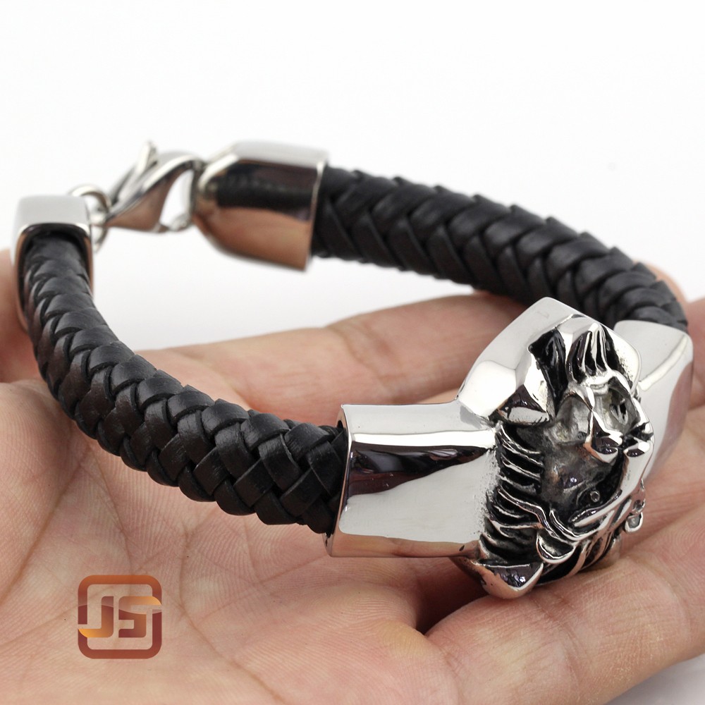 - Name: 2016 new design fashion stainless steel lion bracelet for women mens braid genuine leather rope bracelets charms for bracelets
