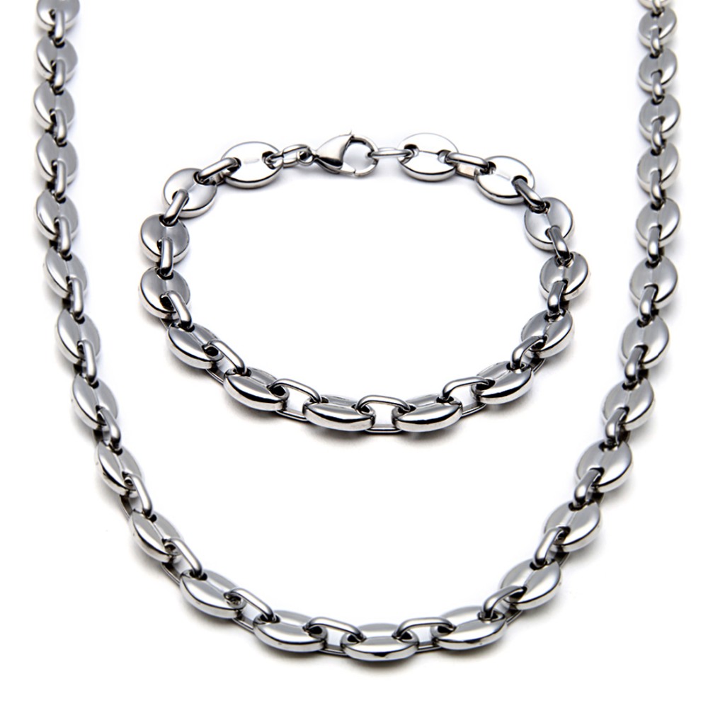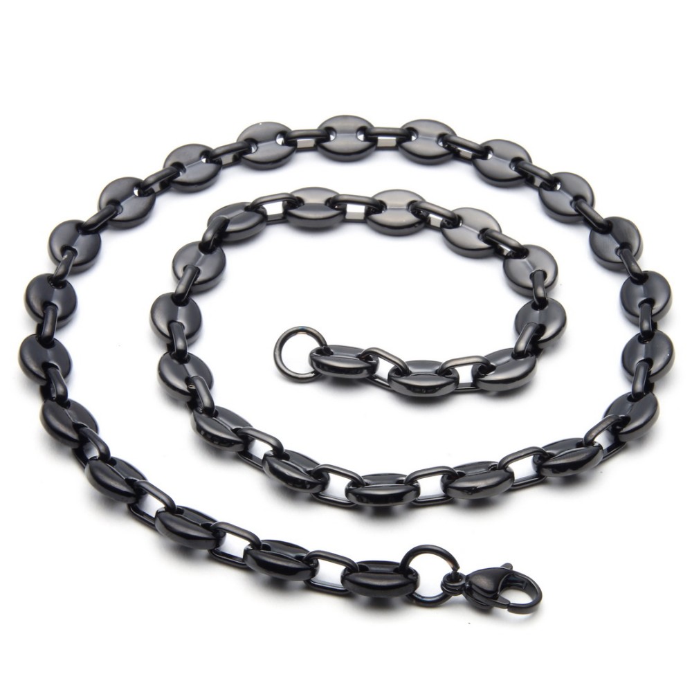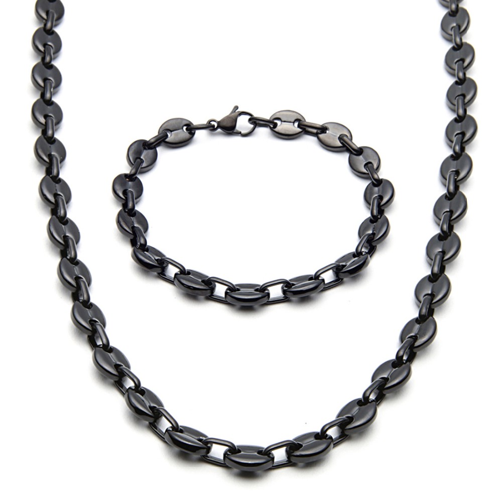 - Name: Stainless Steel Necklace Bracelet Set Coffee Bean Link Chain Jewelry Sets for Men collier homme Gold Black Color Chains