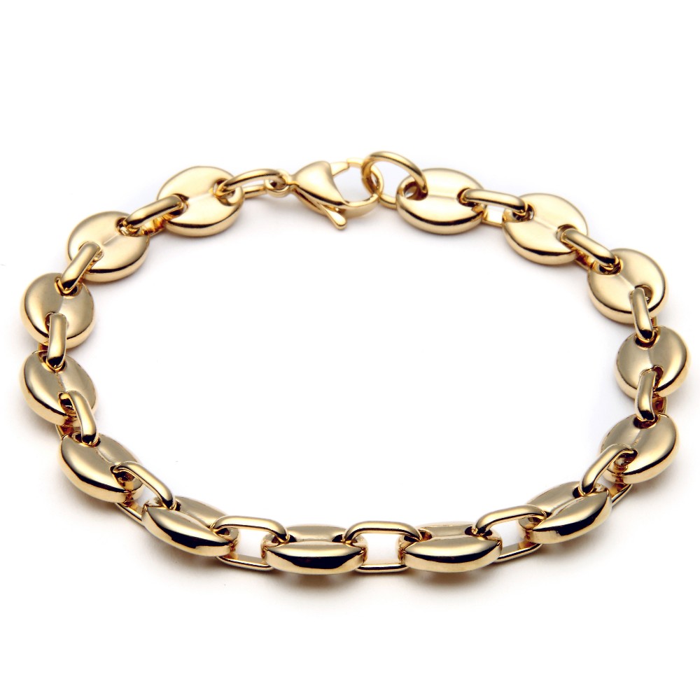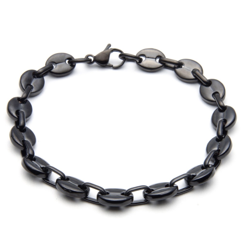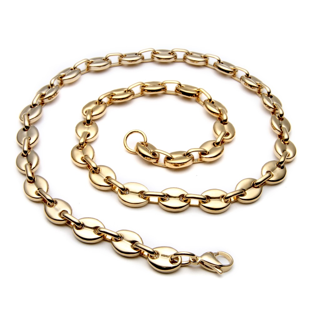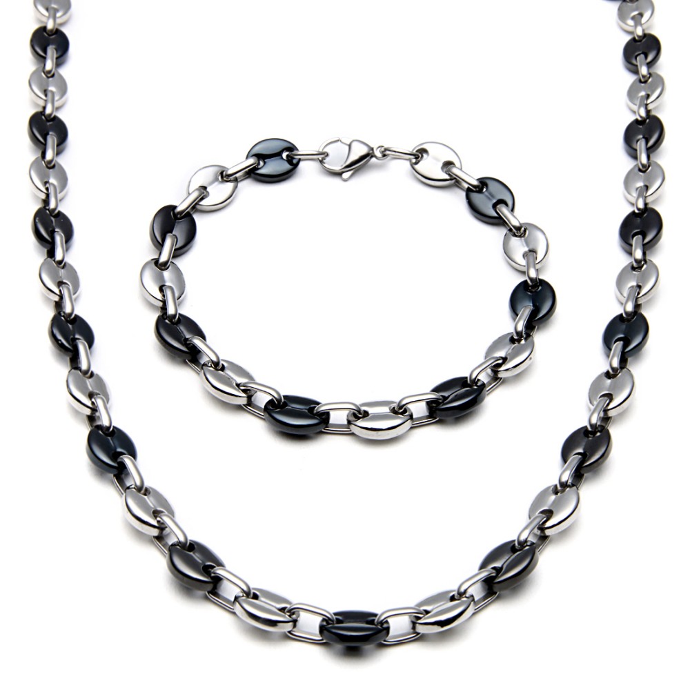 - Name: Stainless Steel Necklace Bracelet Set Coffee Bean Link Chain Jewelry Sets for Men collier homme Gold Black Color Chains