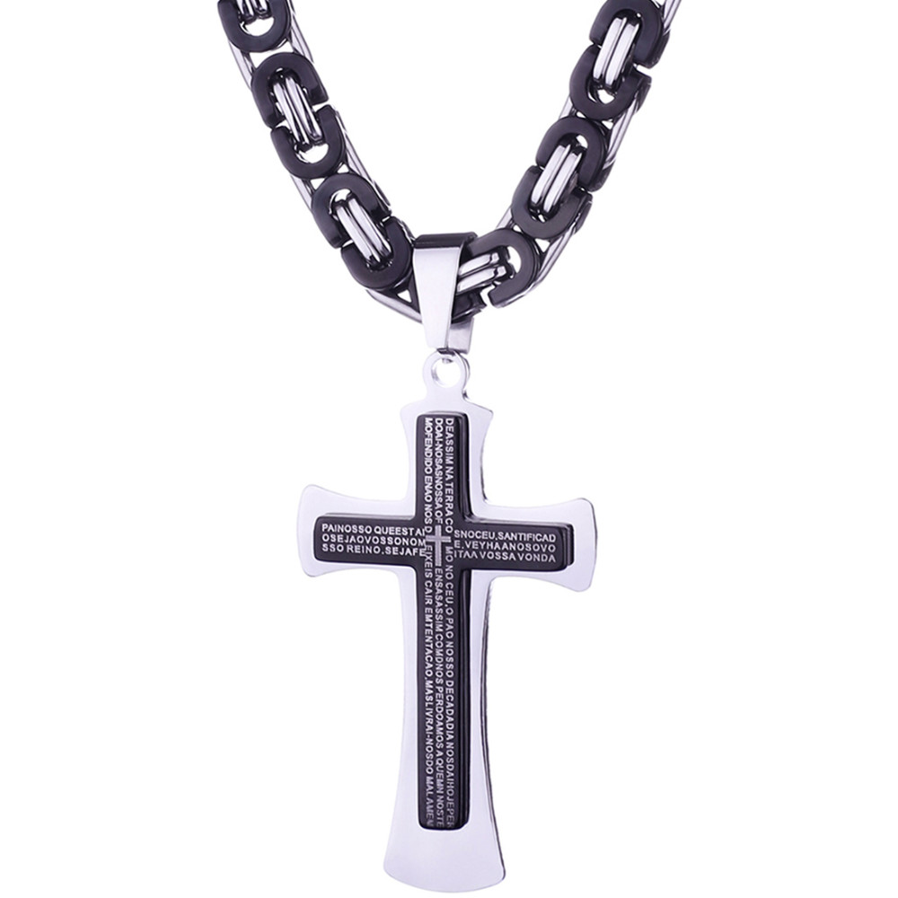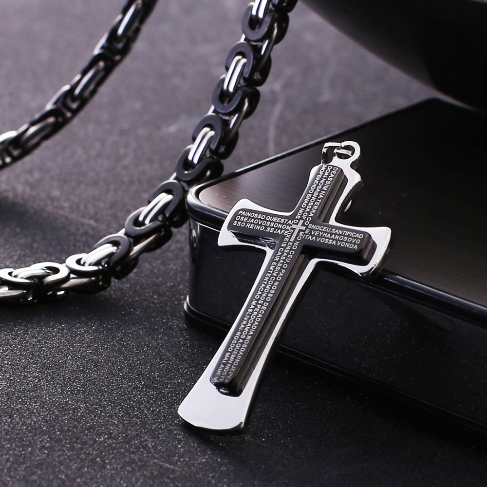 - Name: Black Pendant Necklace Bible Cross 6mm Thick Heavy Strong Choker Chain Men Necklaces Byzantine Jewelry for Men Male