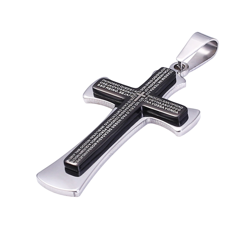 Black Pendant Necklace Bible Cross 6mm Thick Heavy Strong Choker Chain Men Necklaces Byzantine Jewelry for Men Male