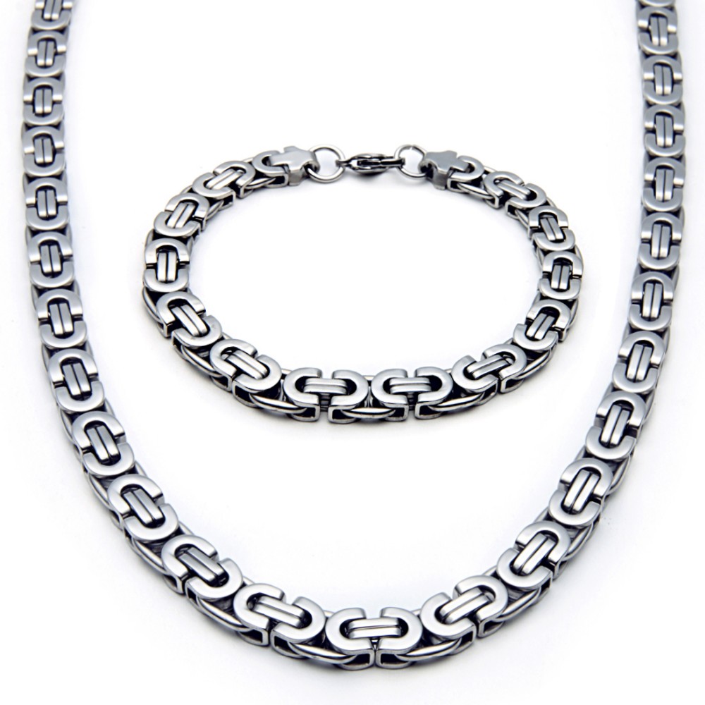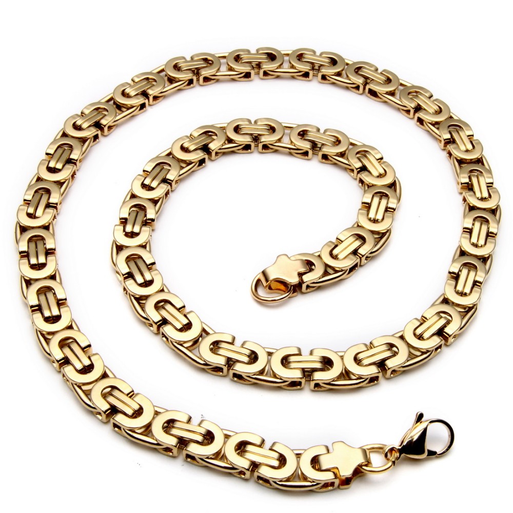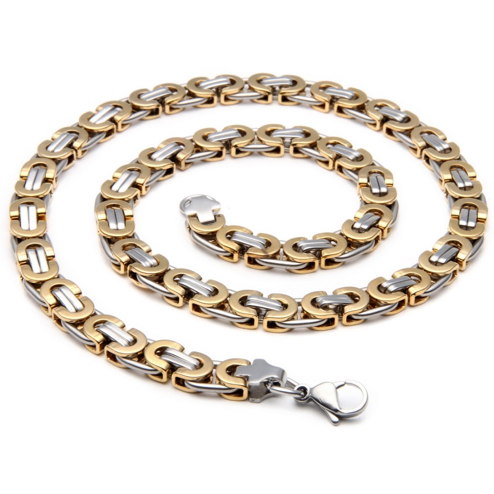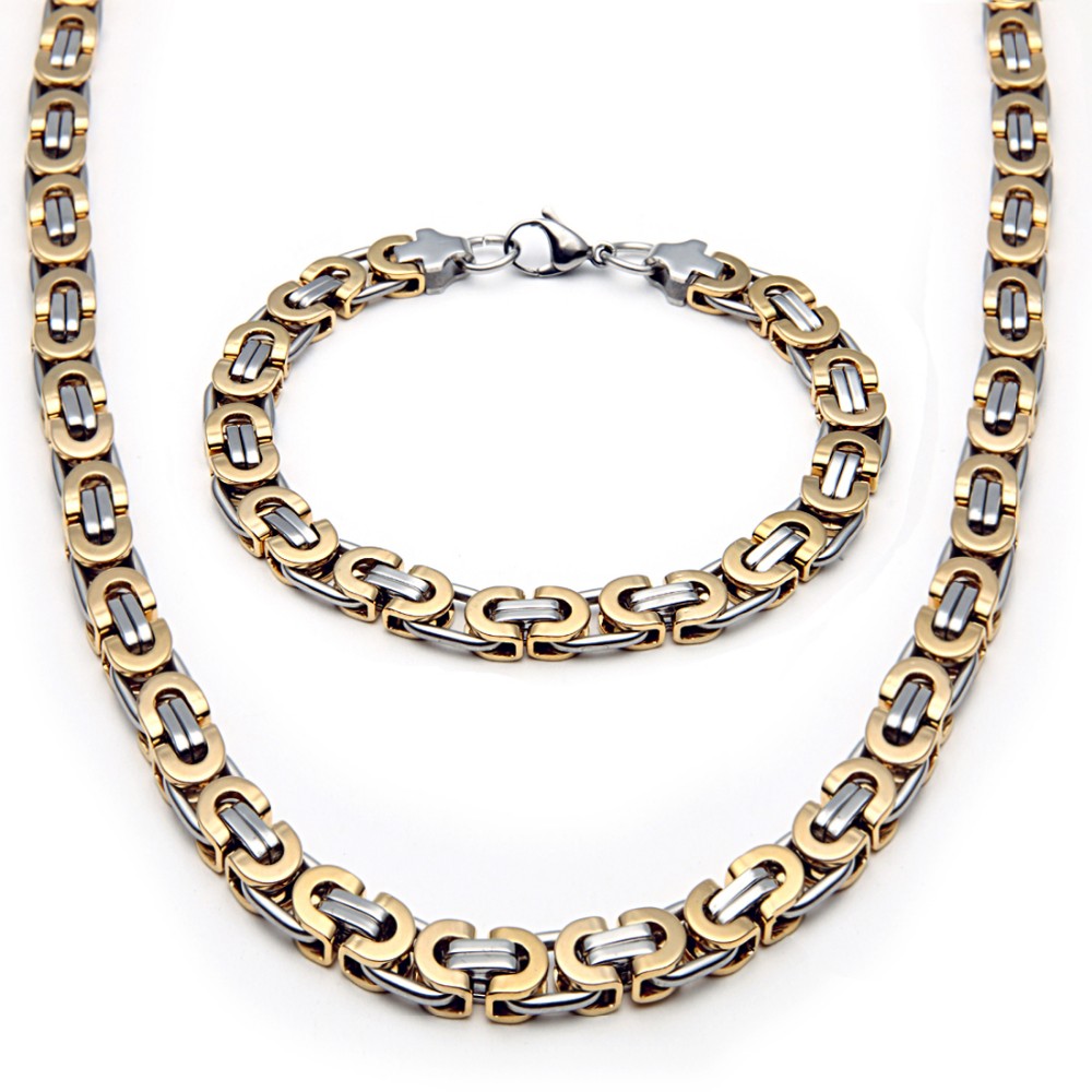 - Name: Large Necklace for Men Gold Color Stainless Steel Byzantine Chain Bracelet Necklace Set Men Hip Hop Jewelry Width 8mm