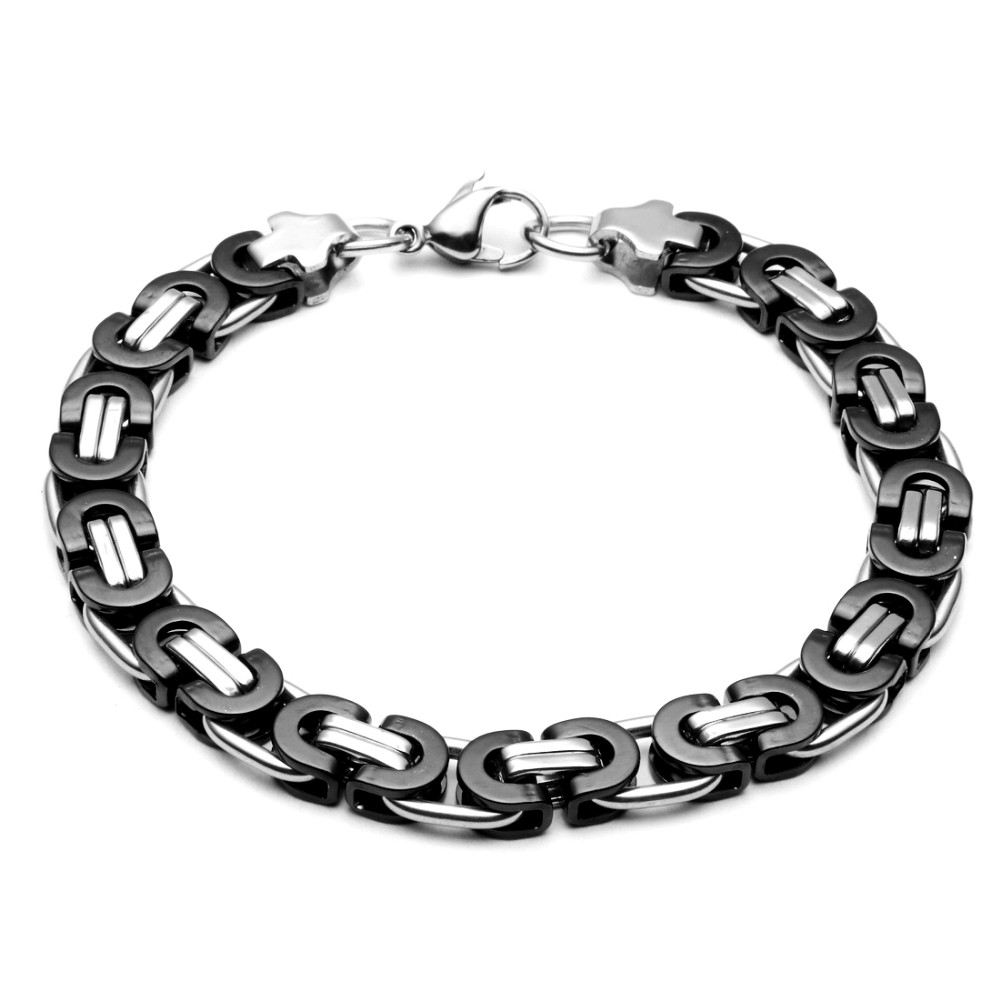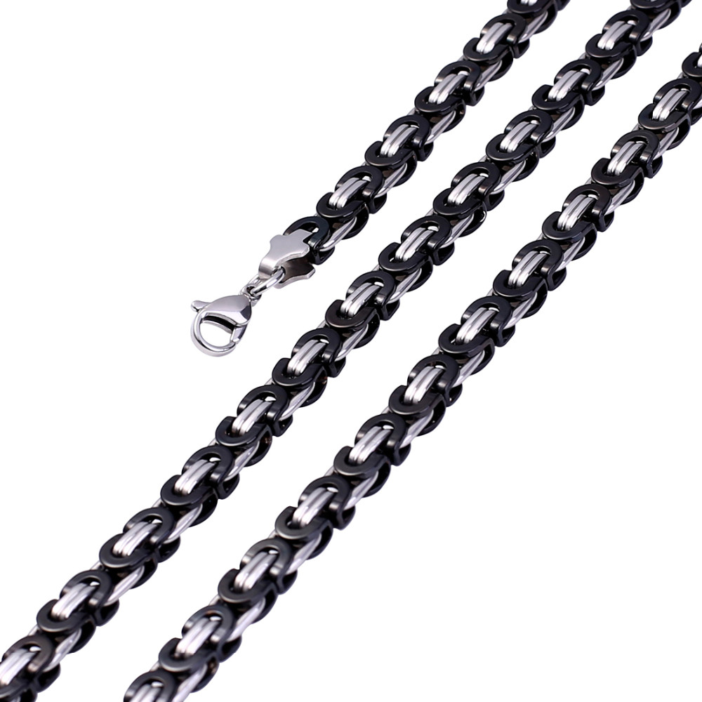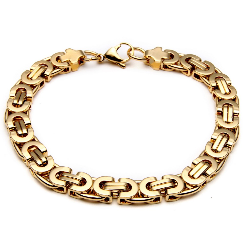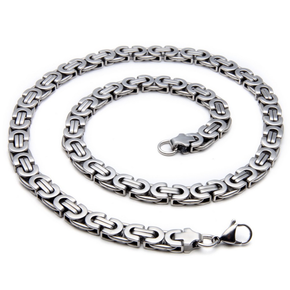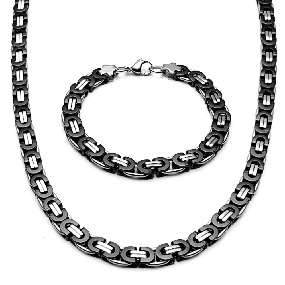 - Name: Large Necklace for Men Gold Color Stainless Steel Byzantine Chain Bracelet Necklace Set Men Hip Hop Jewelry Width 8mm