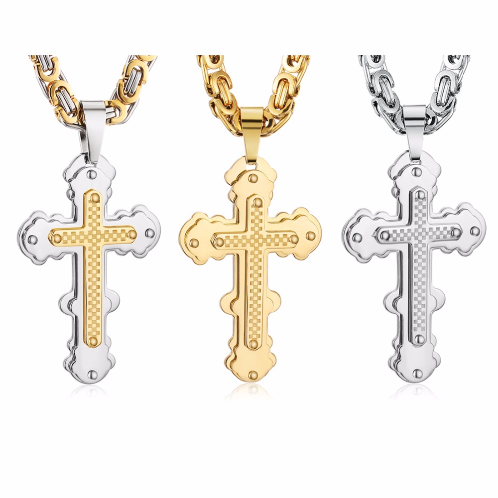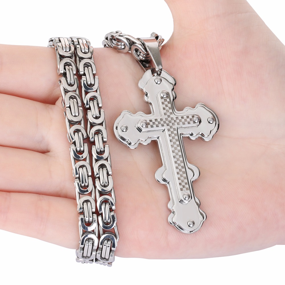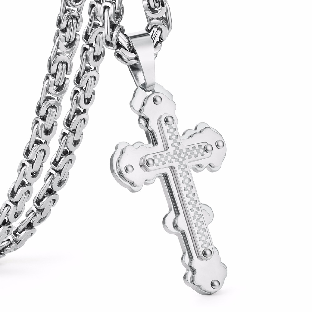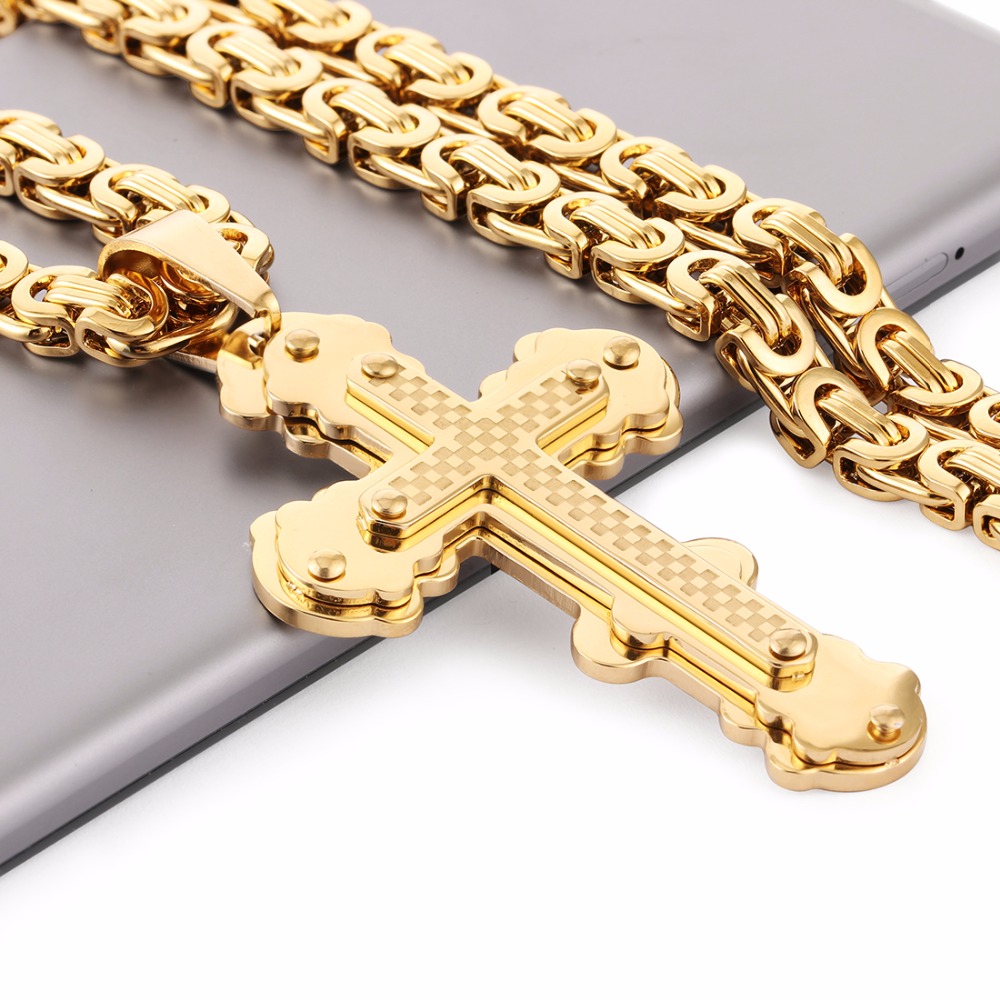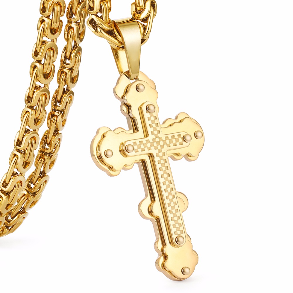 - Name: Jesus Cross Pendant Necklace Stainless Steel Men Jewelry Byzantine Link Chain Poplular Christian Colar Sliver Gold Color