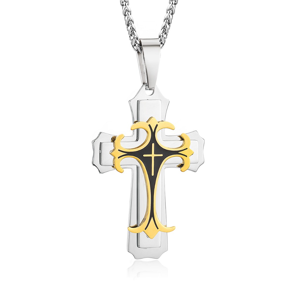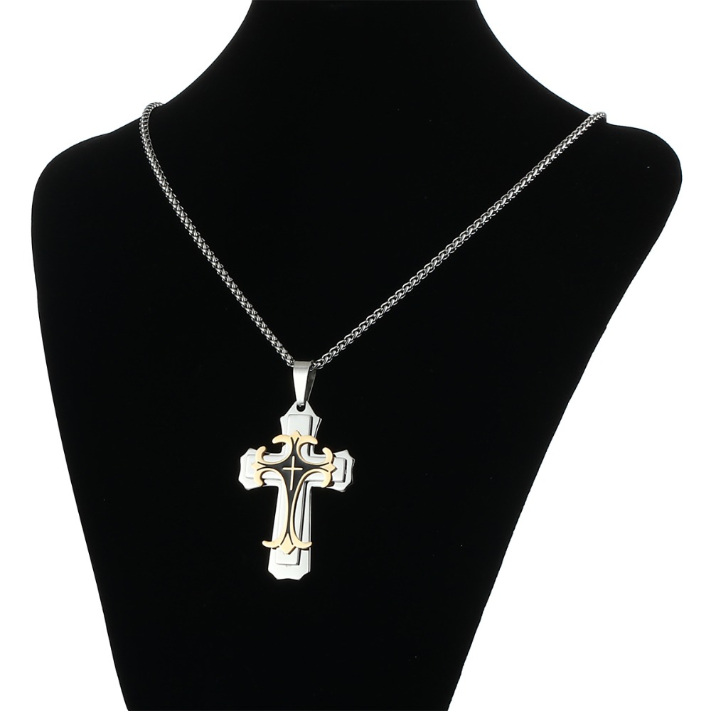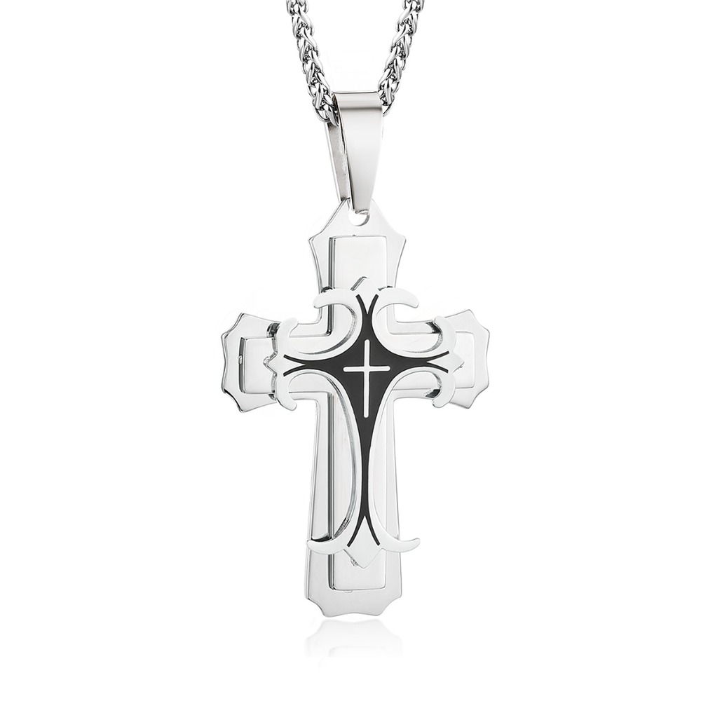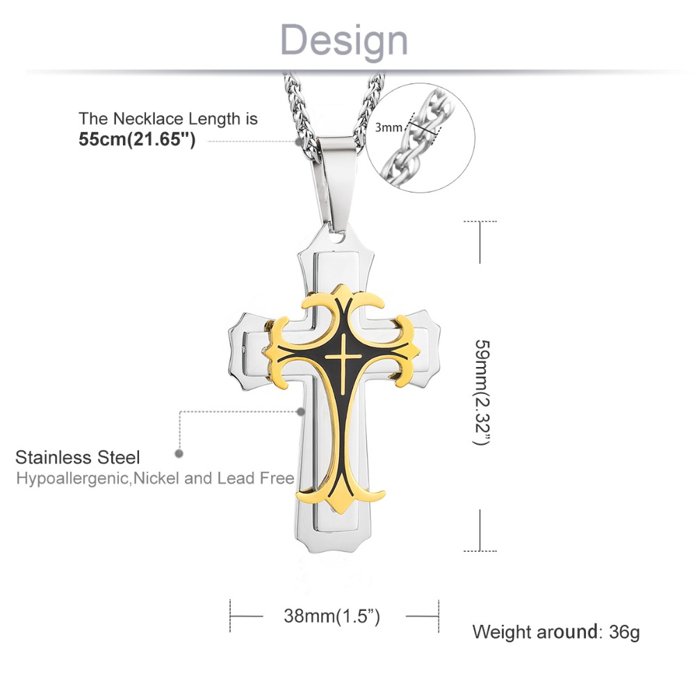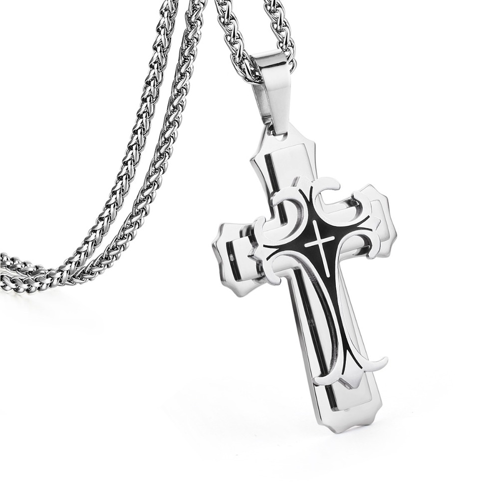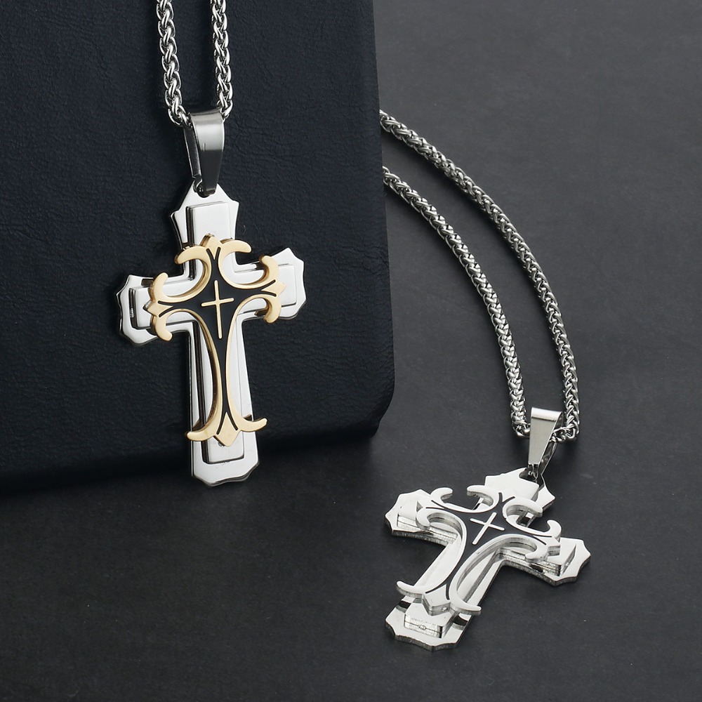 - Name: Male Stainless Steel 3 Layers Cross Pendants Necklaces for Men Link Chains Vintage Metal Jewelry Boys Gifts