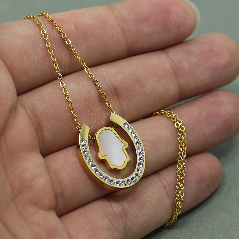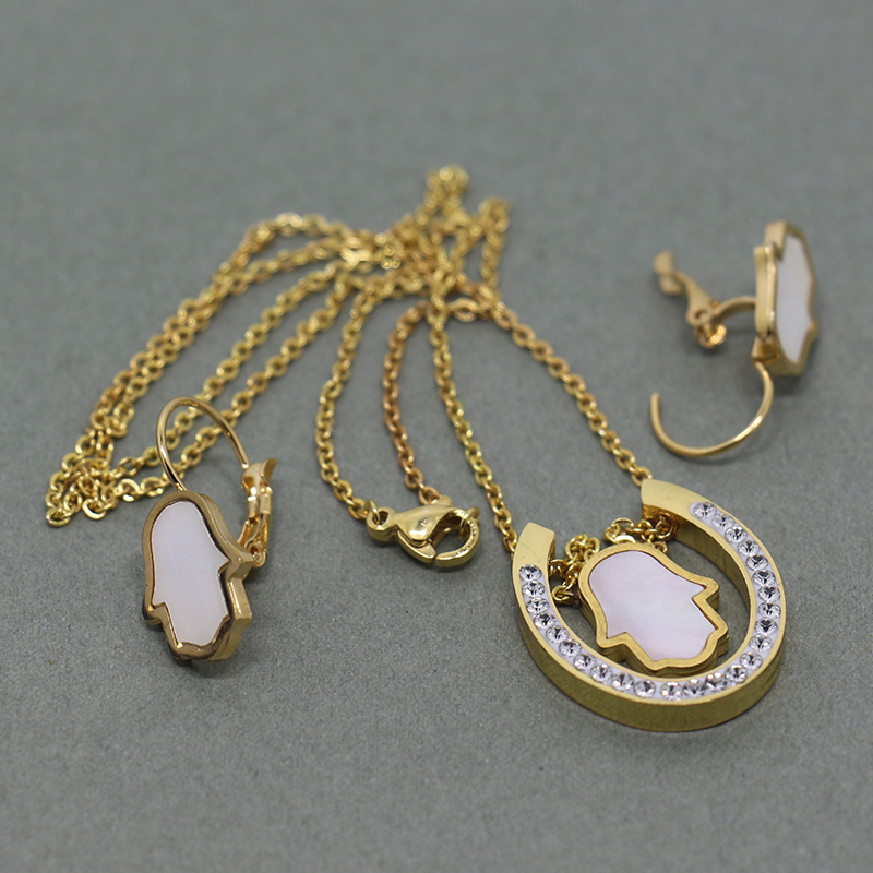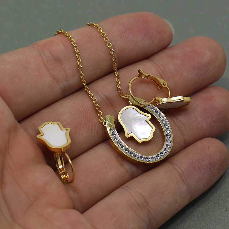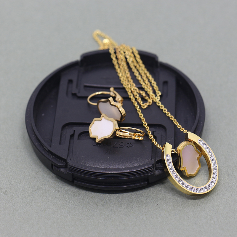 - Name: Women Punk Female Circle Necklace Stainless Steel White Shell Round Circles Pendant Necklace earring Jewery