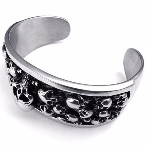 - Name: Women's Punk Retro Jewelry Stainless Steel Silvery Black Gothic Skulls Decorated Newest Popular Cuff Bangle Size:48mm