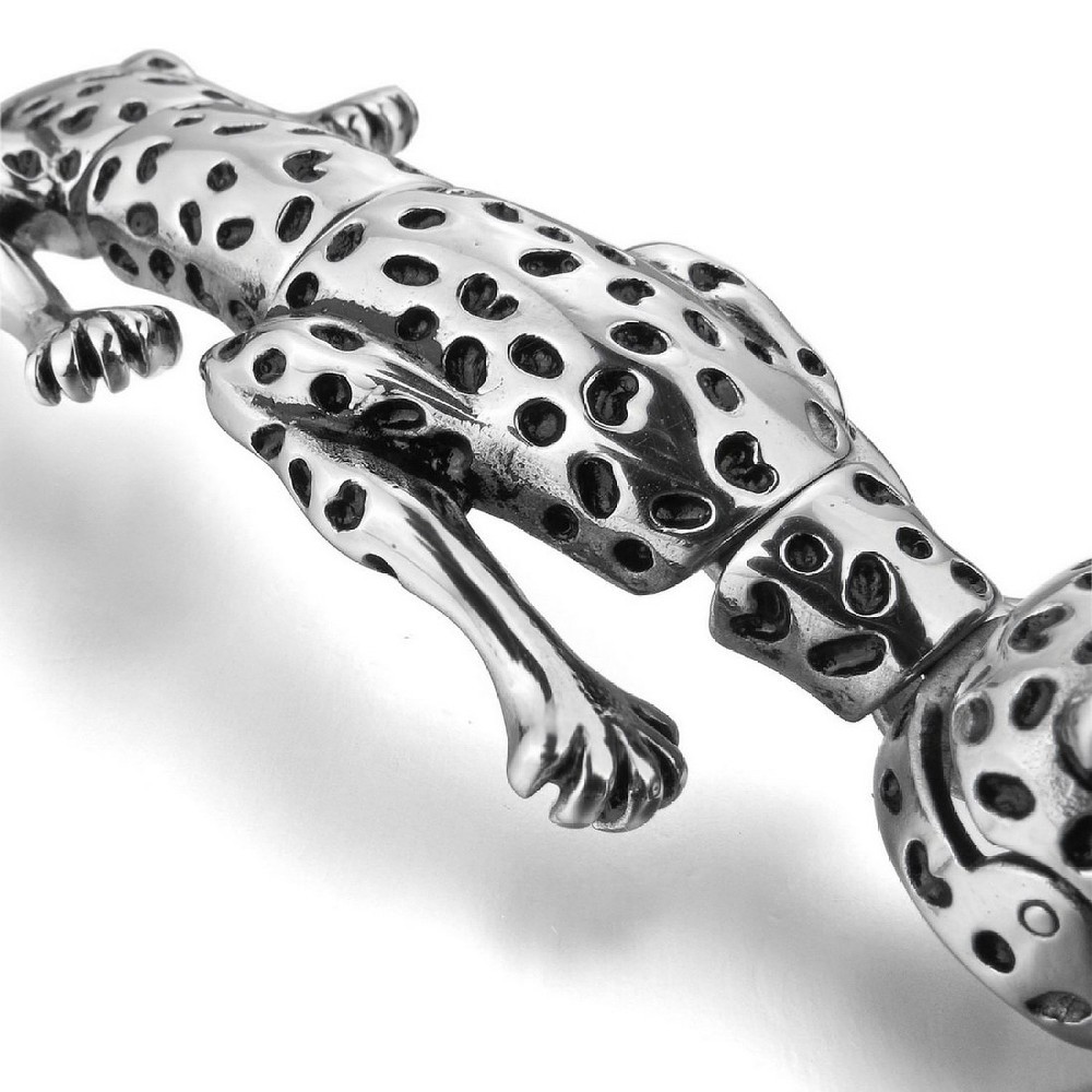 - Name: Silver Black Biker Bracelet Stainless Steel Bracelet Gothic Men's Leopard Link Wrist Bracelet