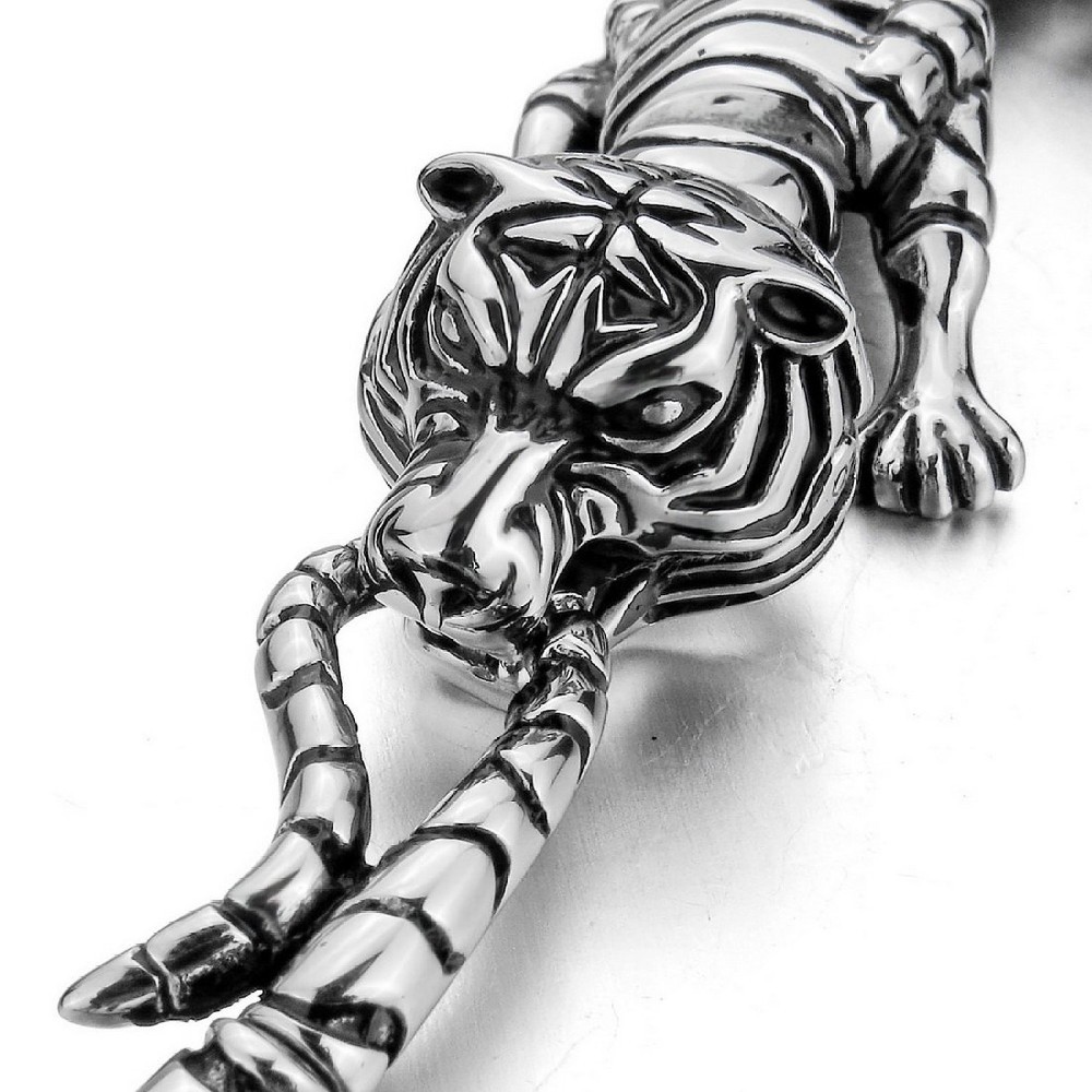 - Name: Tiger Wrist Bracelet Stainless Steel Bracelet Man Silver Black Tiger Biker Bracelet Size Length 36mm Width 216 mm