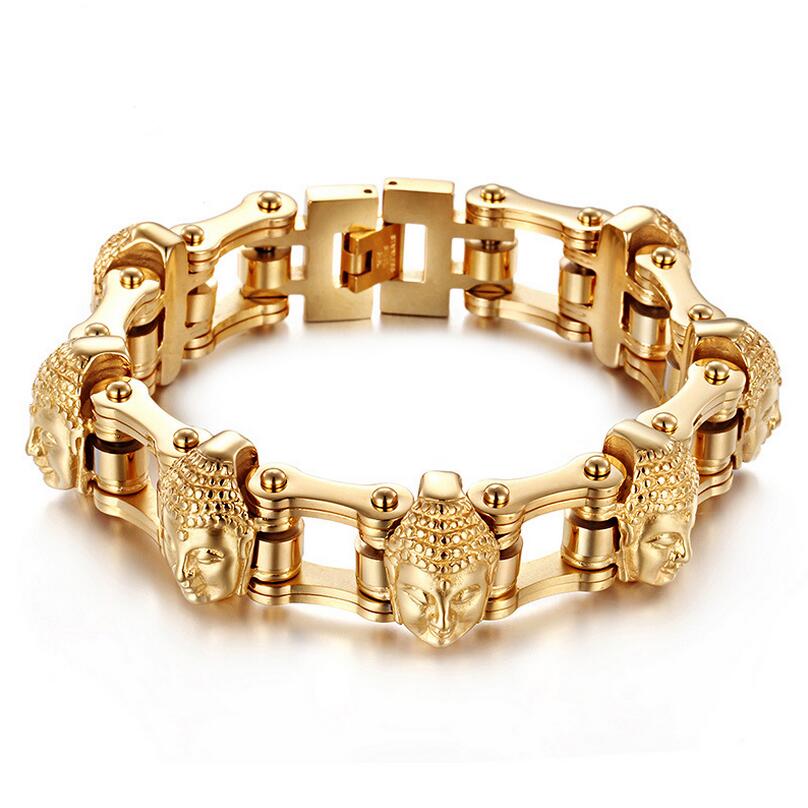- Name: Buddhist friends Mens Gold Chain Buddha Head Biker Bicycle Motorcycle Link 316L Stainless Steel Bracelet