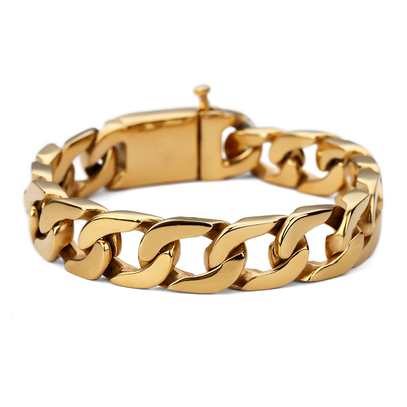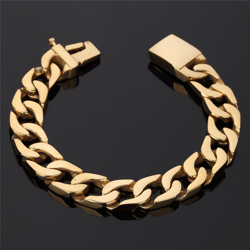 - Name: Cuban men's popular bracelet 15mm Wide Bangles Gold Big Thick Stainless Steel Bracelet Give friends the best gift