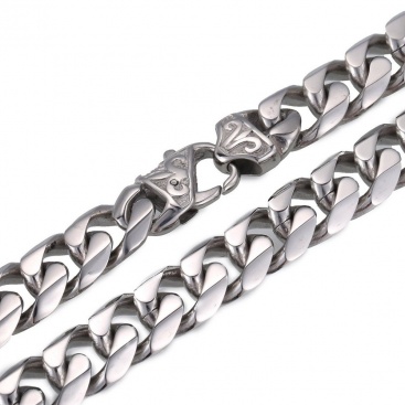 - Name: 14.5mm Heavy Polished Silver Tone Cut Curb Cuban Mens Chain Boys 316L Stainless Steel Necklace