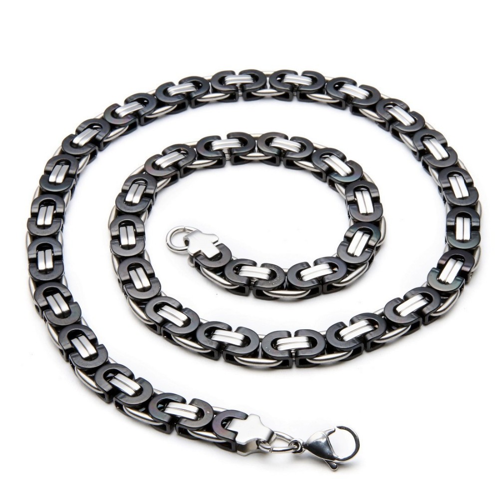 - Name: Large Necklace for Men Gold Color Stainless Steel Byzantine Chain Bracelet Necklace Set Men Hip Hop Jewelry Width 8mm