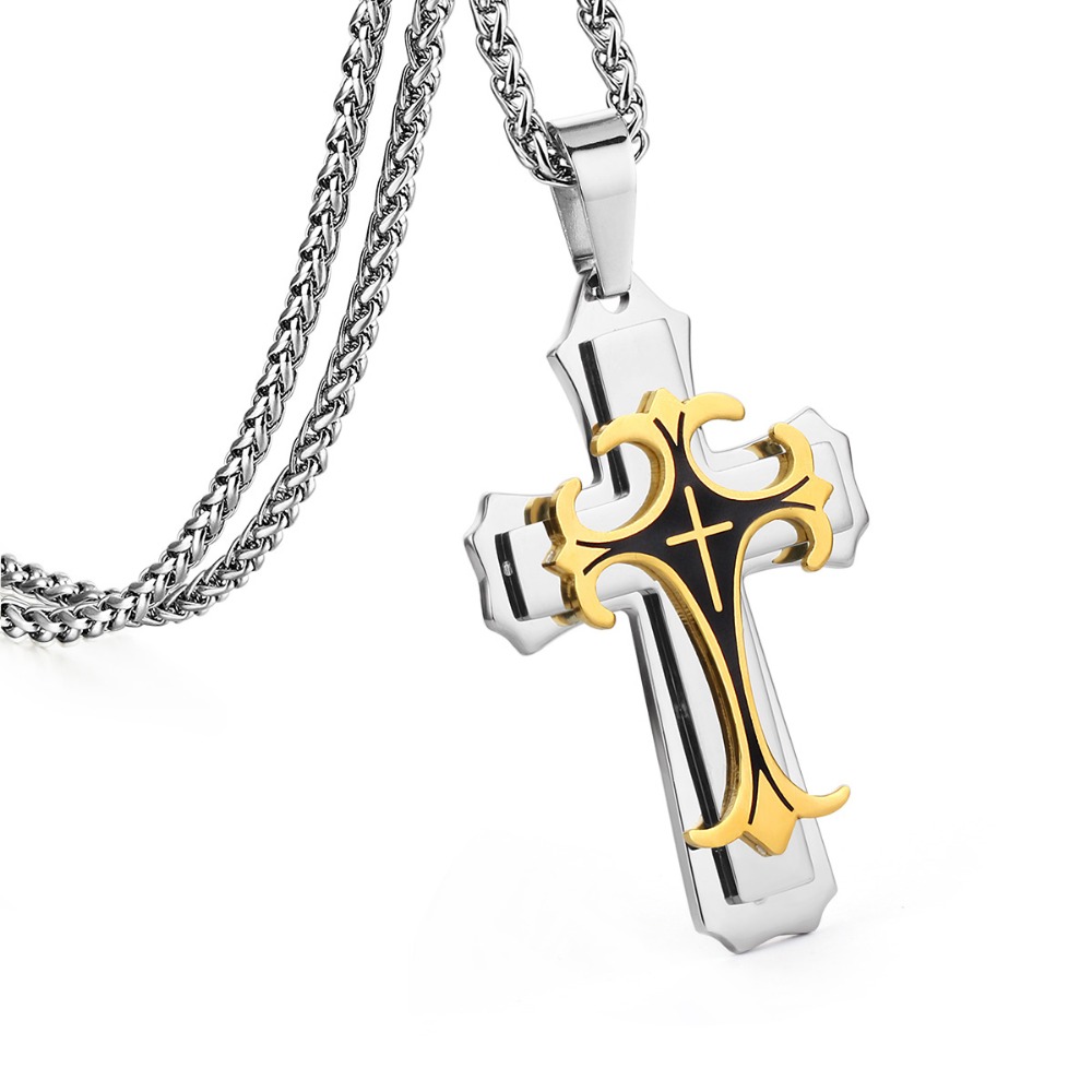 - Name: Male Stainless Steel 3 Layers Cross Pendants Necklaces for Men Link Chains Vintage Metal Jewelry Boys Gifts
